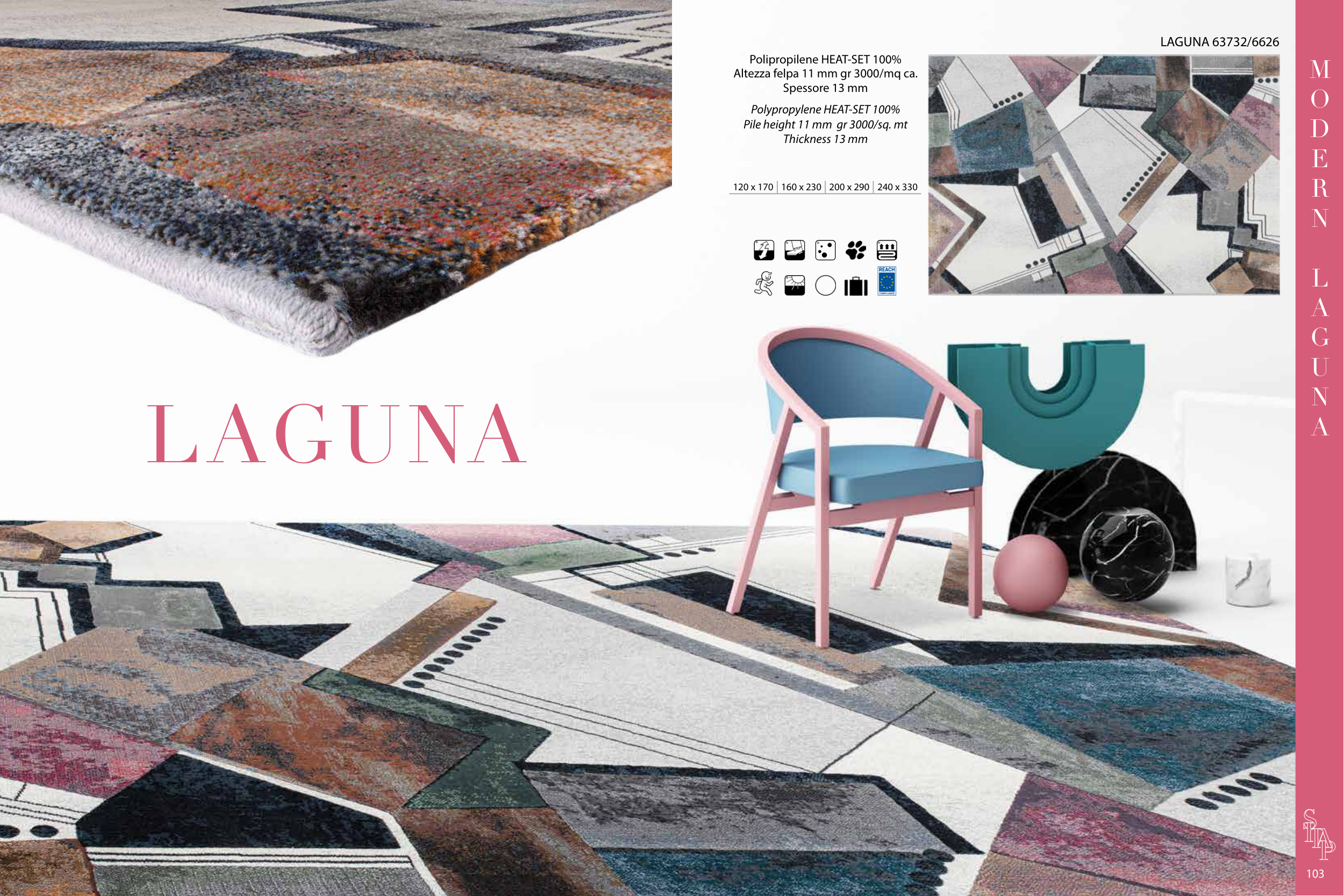 120 x 170 160 x 230 200 x 290 240 x 330 REACH COMPLIANCE LAGUNA 103 M O D E R N