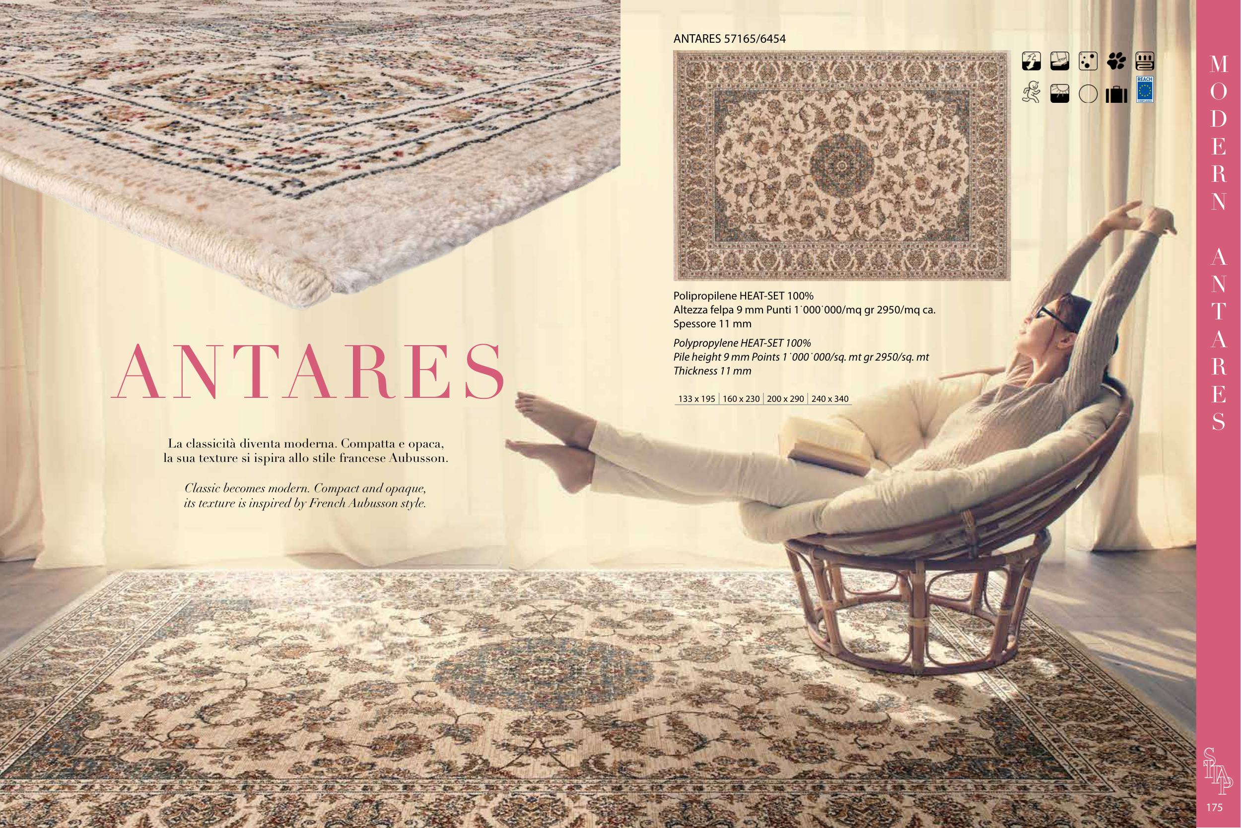la sua texture si ispira allo stile francese Aubusson.