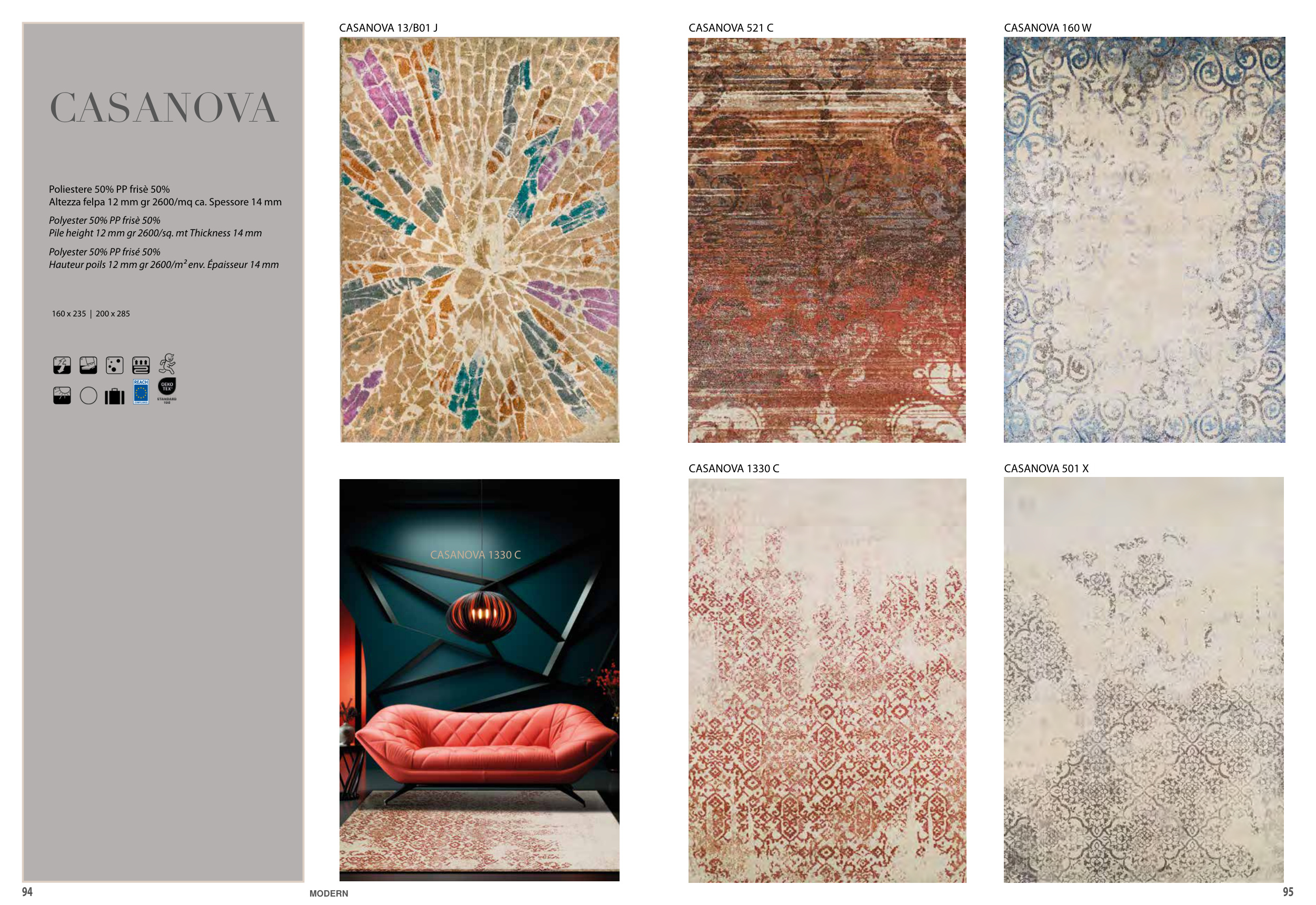 Pile height 12 mm gr 2600/sq. mt Thickness 14 mm