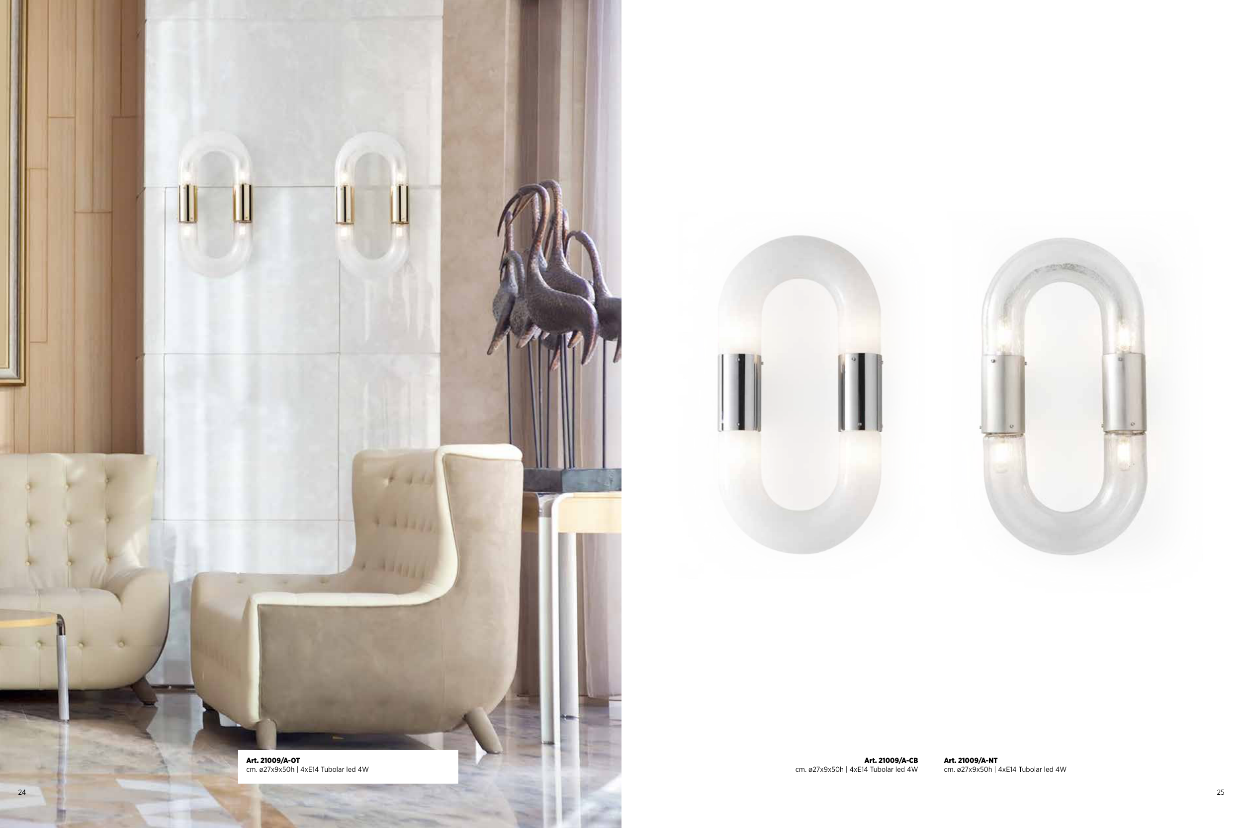 cm. ø27x9x50h | 4xE14 Tubolar led 4W