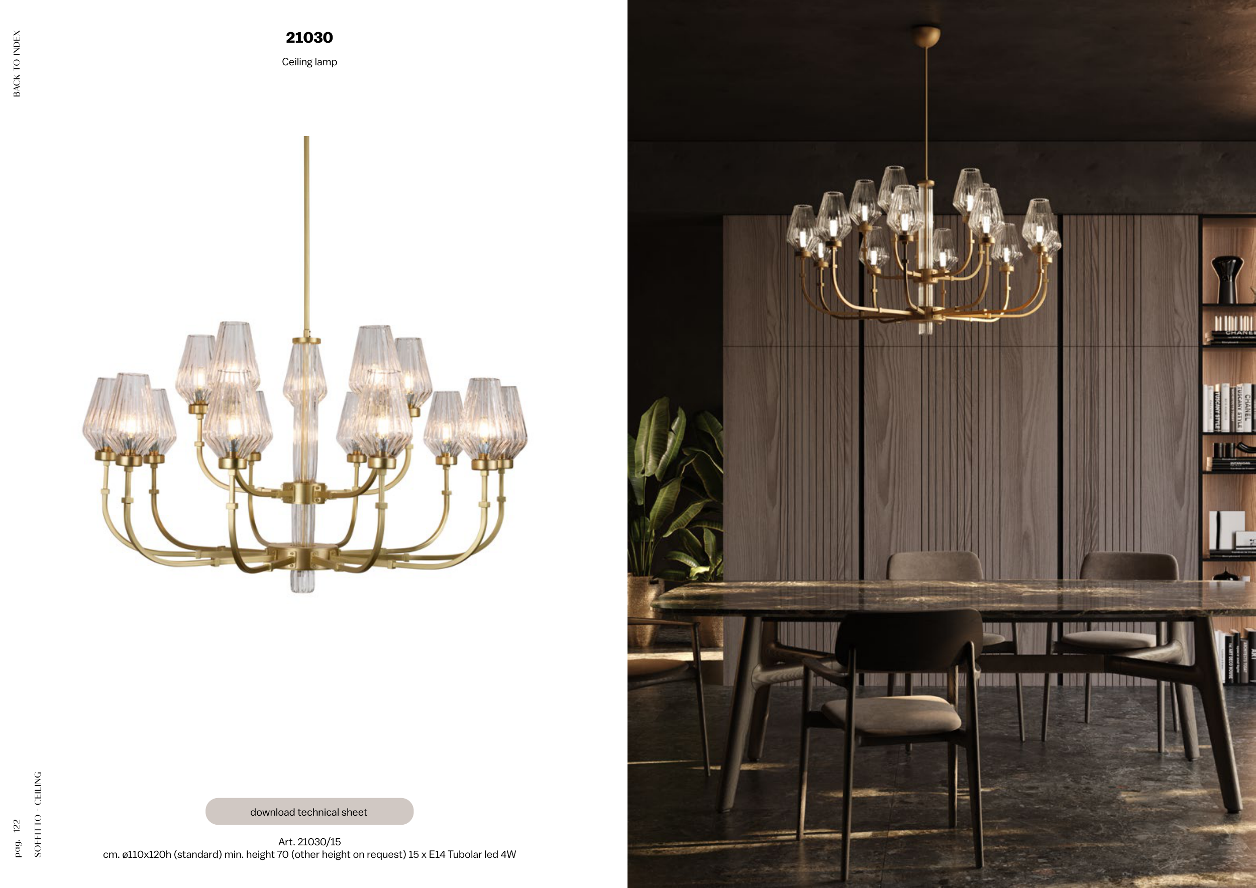 cm. ø110x120h (standard) min. height 70 (other height on request) 15 x E14 Tubolar led 4W