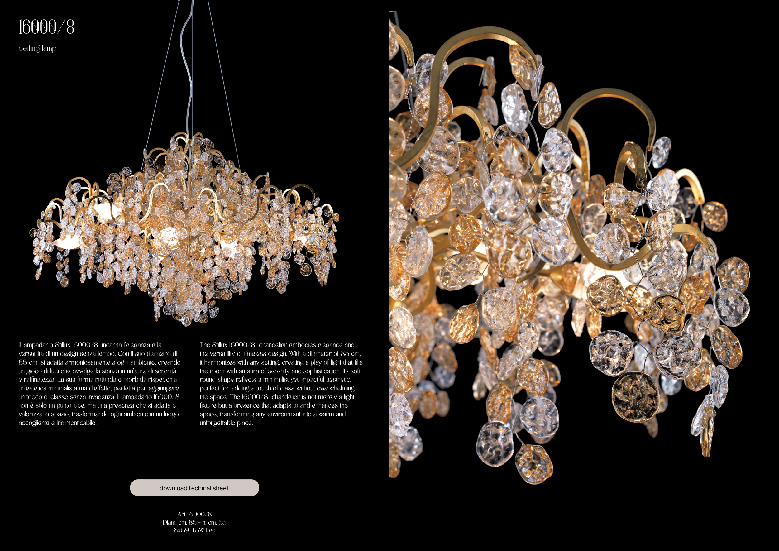The Stillux 16000/8 chandelier embodies elegance and