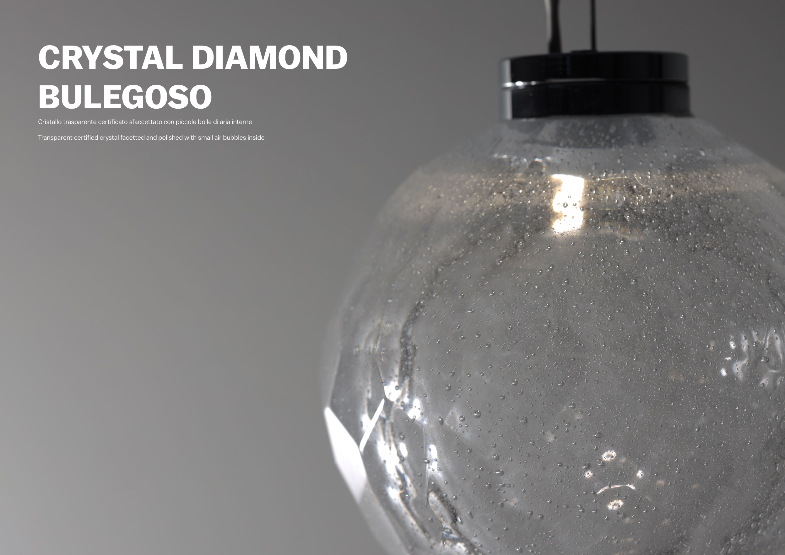 Transparent certified crystal facetted and polished with small air bubbles inside