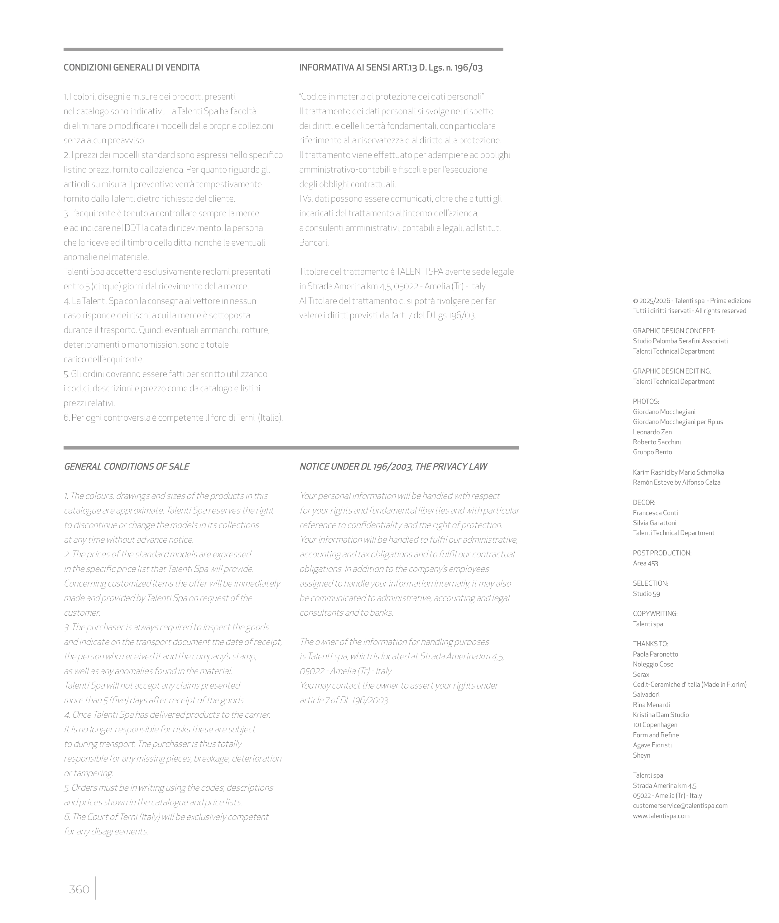 Catalogue Talenti: Accessories 2026, page 182 of 182