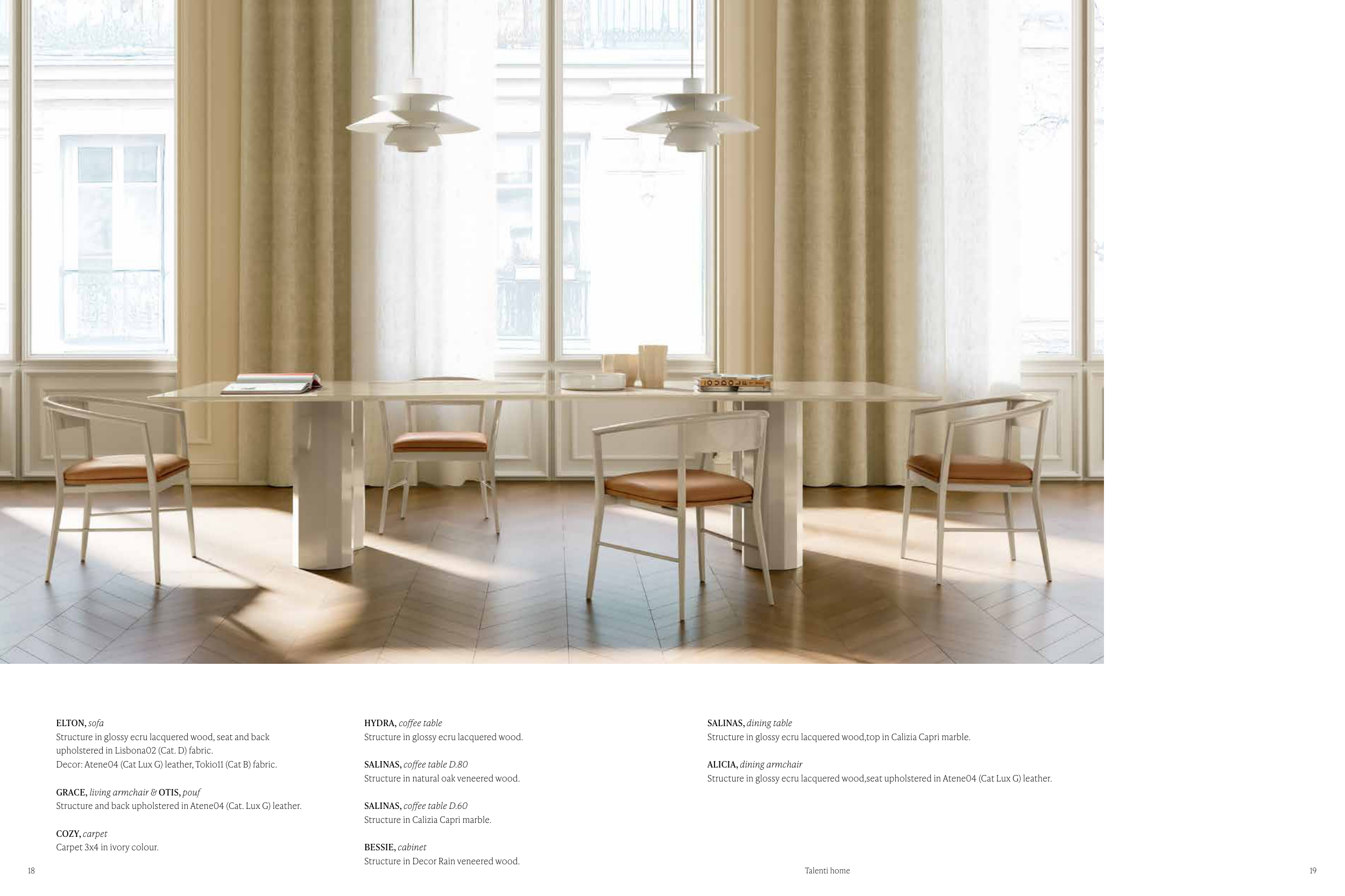 Structure in glossy ecru lacquered wood,seat upholstered in Atene04 (Cat Lux G) leather.