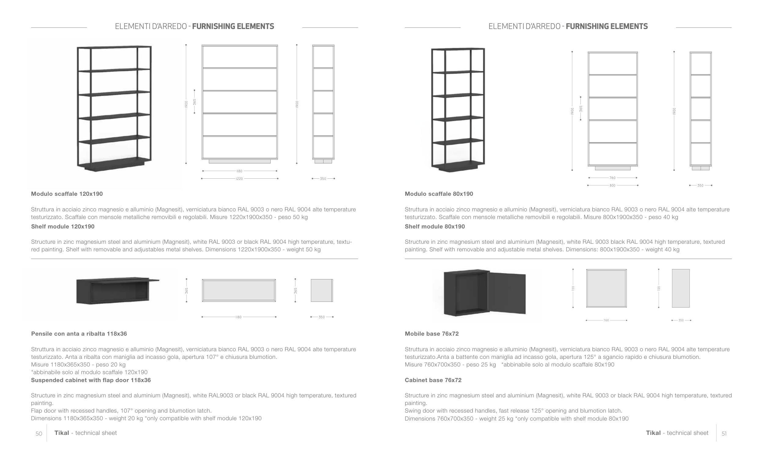 Dimensions 760x700x350 - weight 25 kg *only compatible with shelf module 80x190