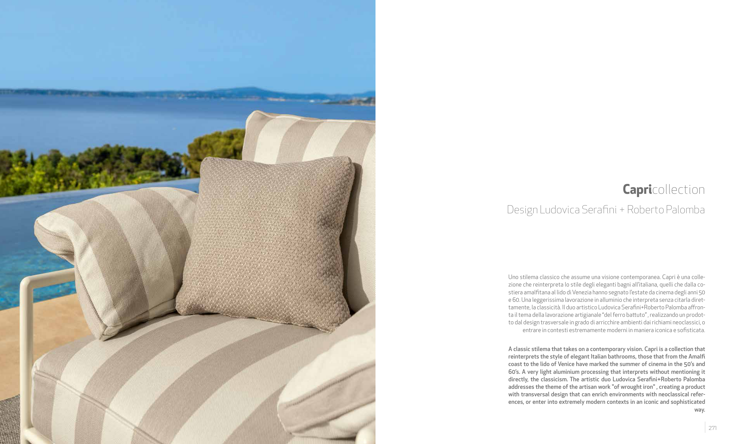 A classic stilema that takes on a contemporary vision. Capri is a collection that