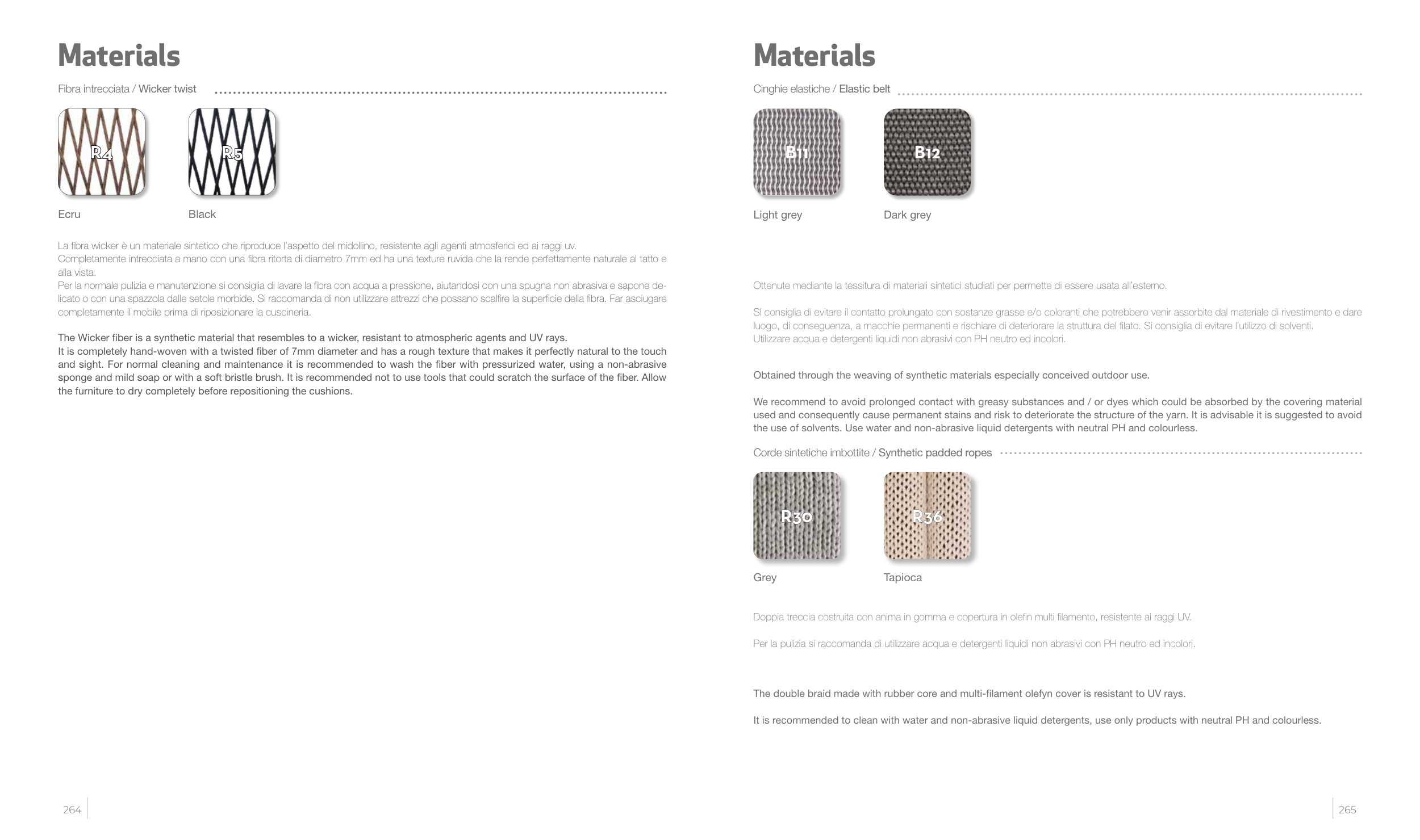 The Wicker fiber is a synthetic material that resembles to a wicker, resistant to atmospheric agents and UV rays.