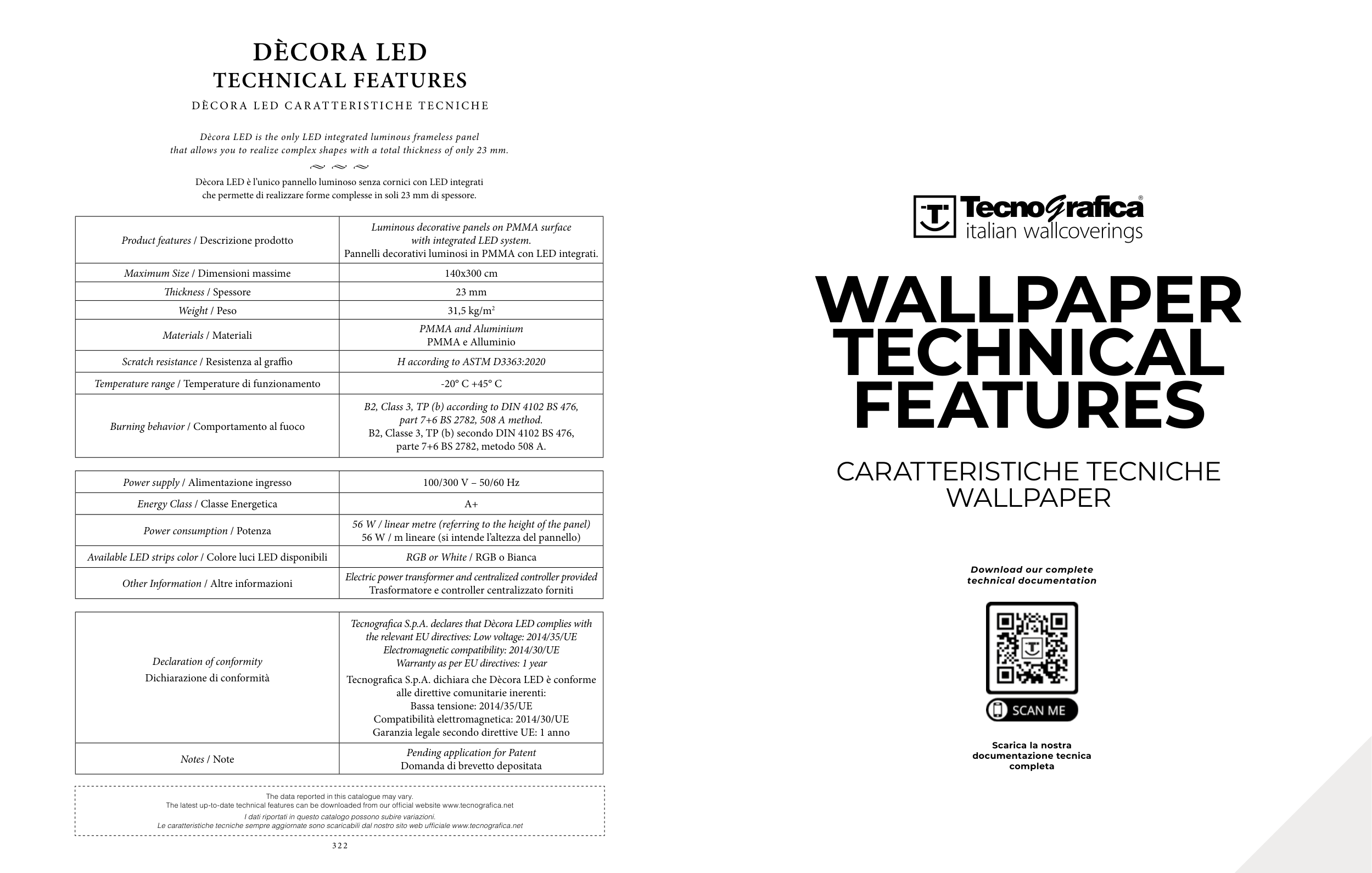 Le caratteristiche tecniche sempre aggiornate sono scaricabili dal nostro sito web ufficiale www.tecnografica.net