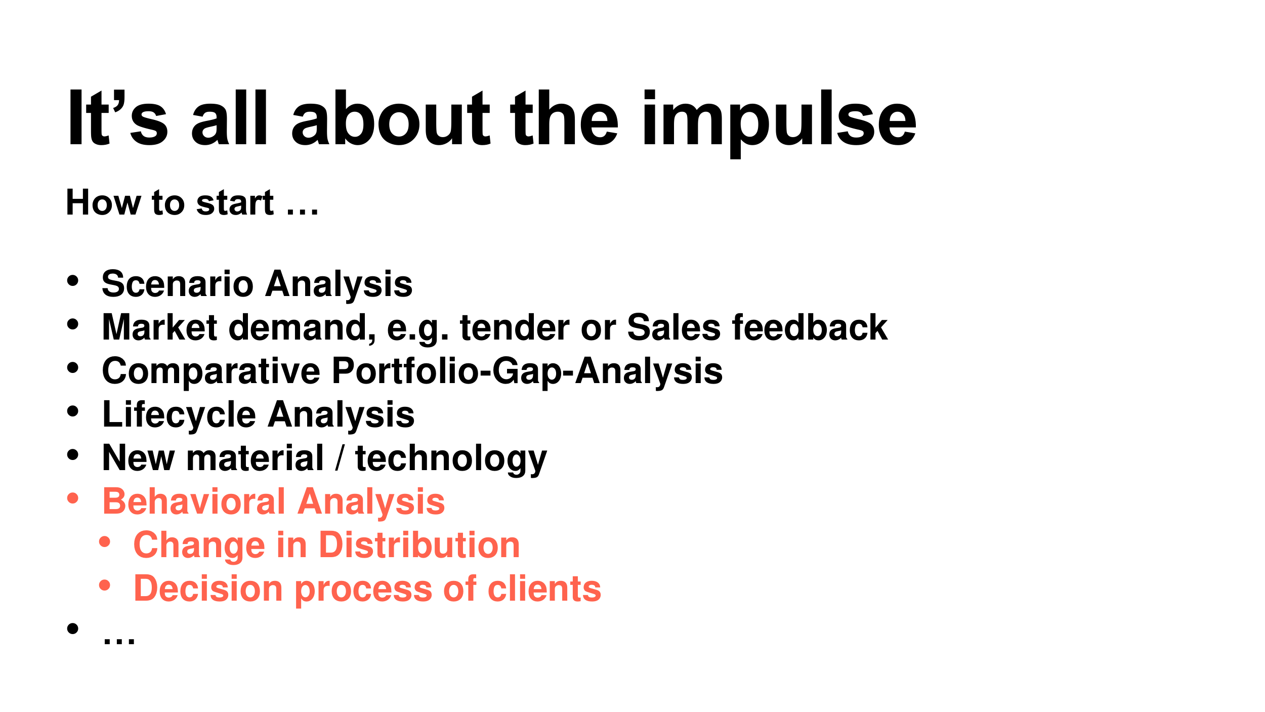 • Market demand, e.g. tender or Sales feedback