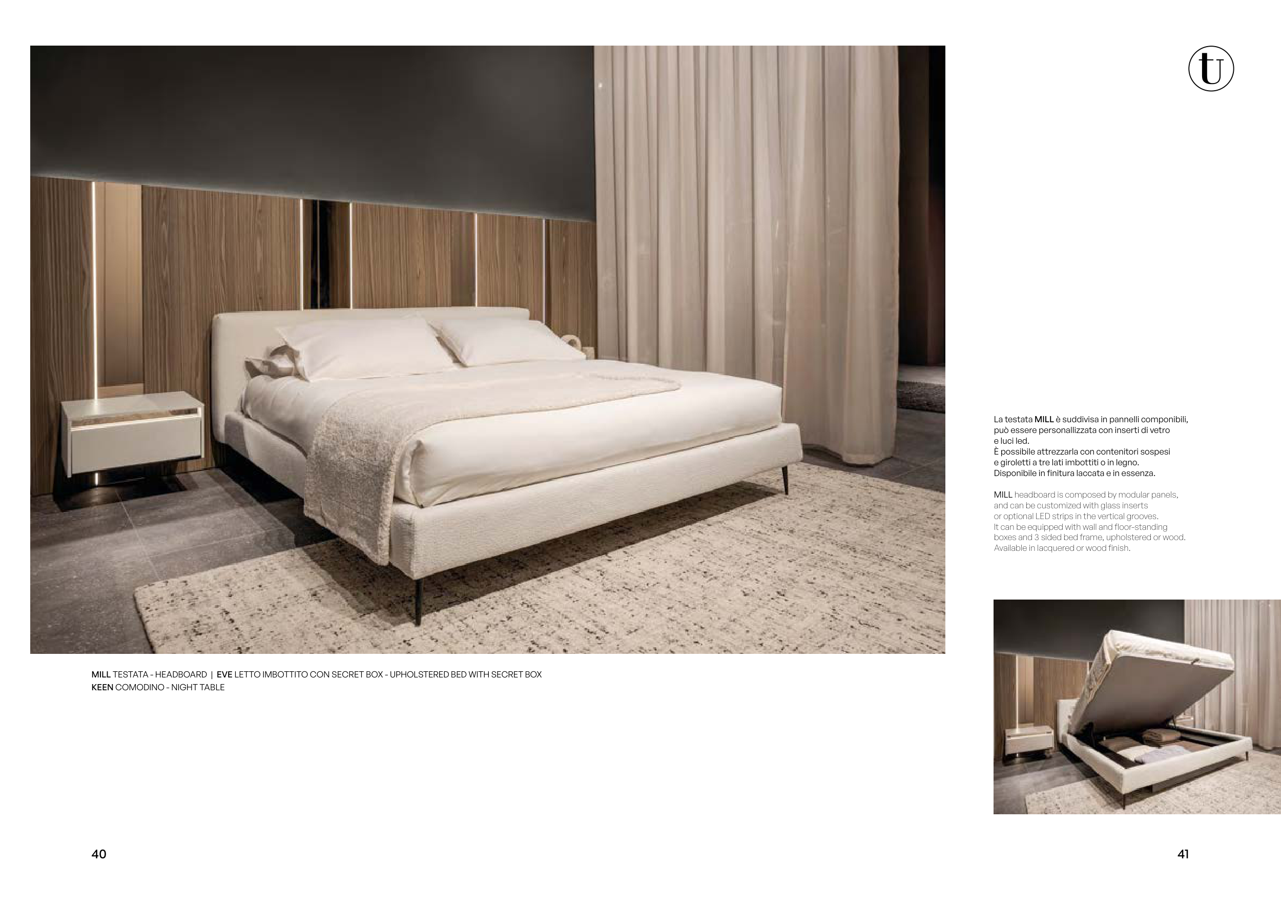 MILL TESTATA - HEADBOARD | EVE LETTO IMBOTTITO CON SECRET BOX - UPHOLSTERED BED WITH SECRET BOX