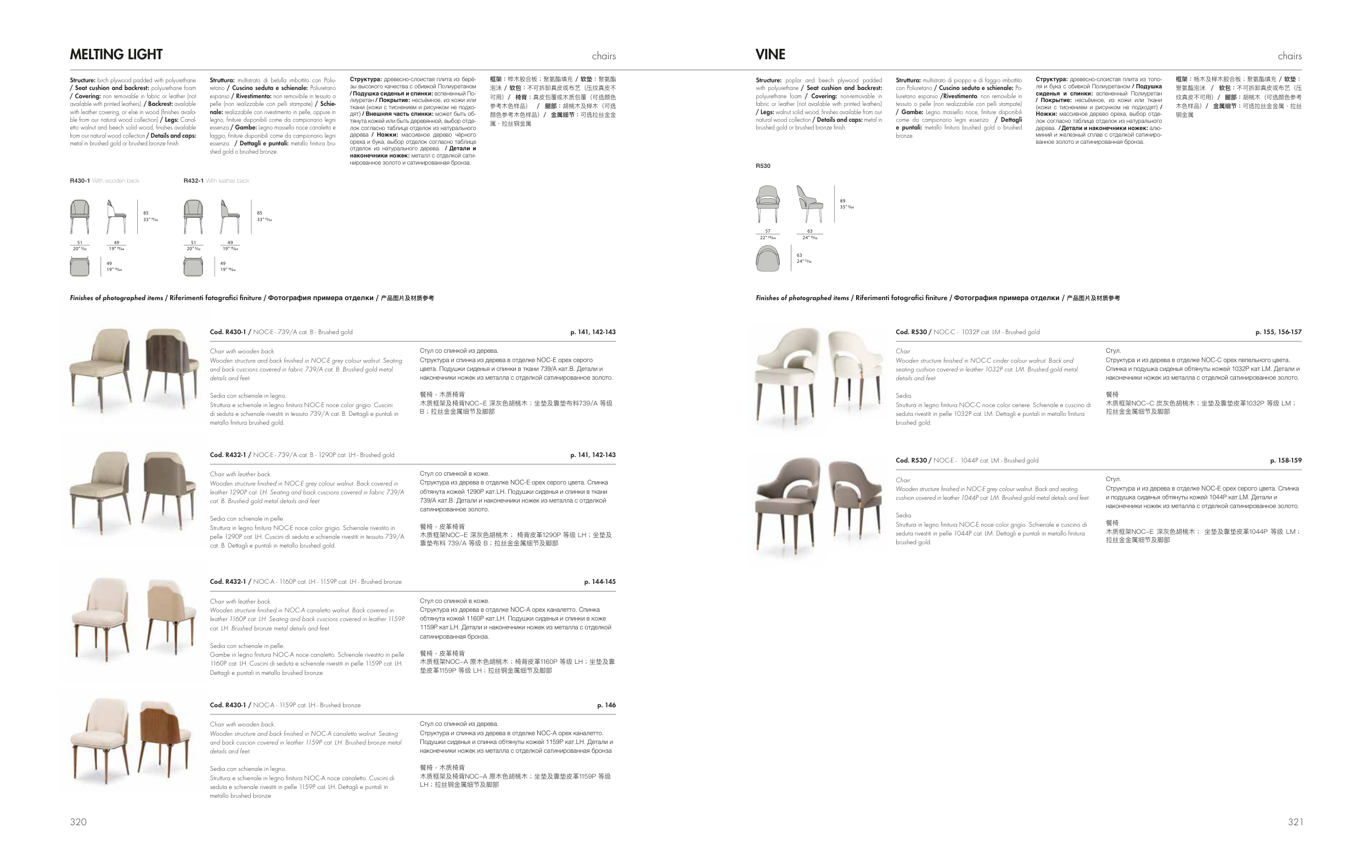 Finishes of photographed items / Riferimenti fotografici finiture / Фотография примера отделки / 产品图片及材质参考