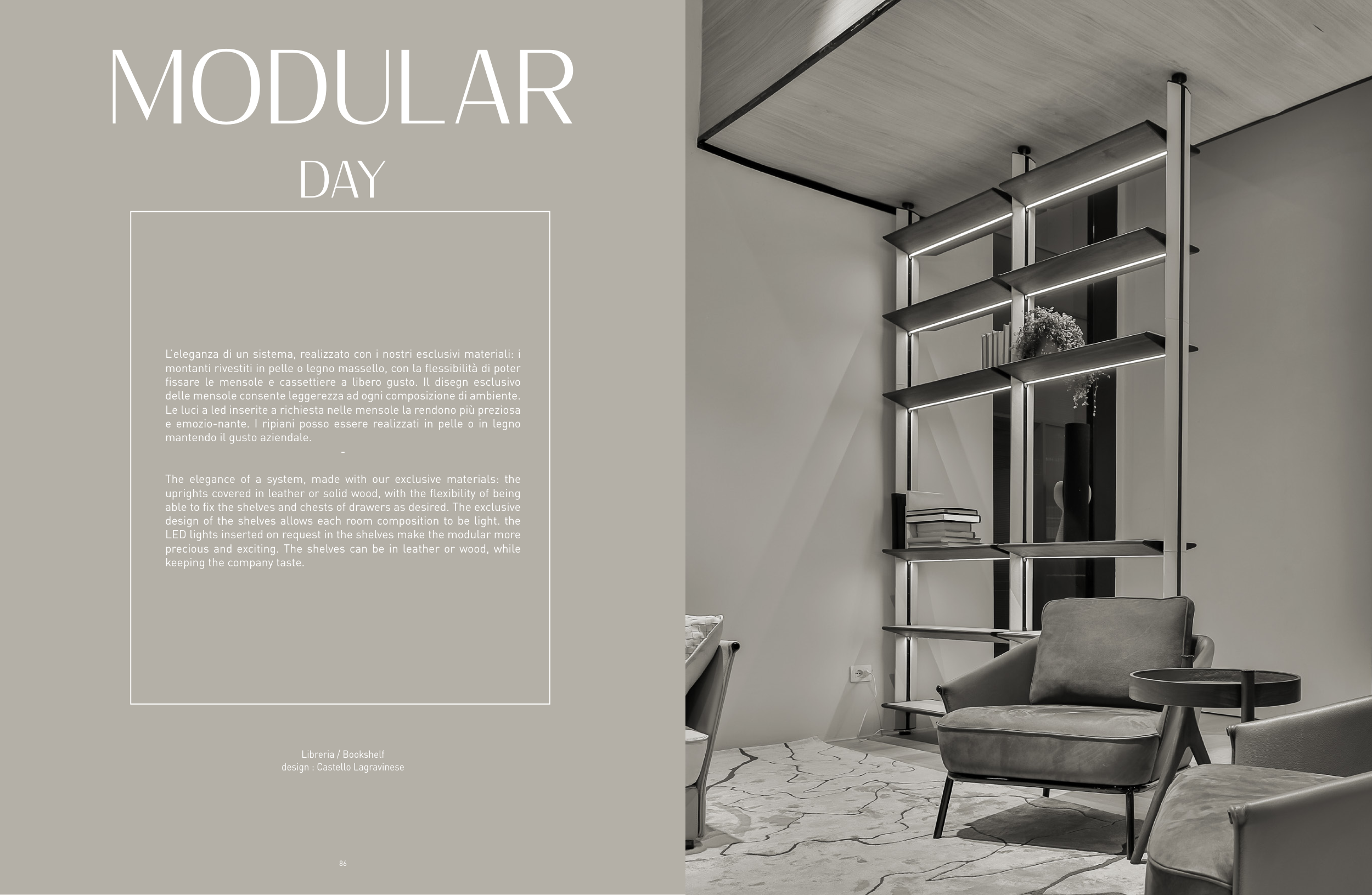 e emozio-nante. I ripiani posso essere realizzati in pelle o in legno