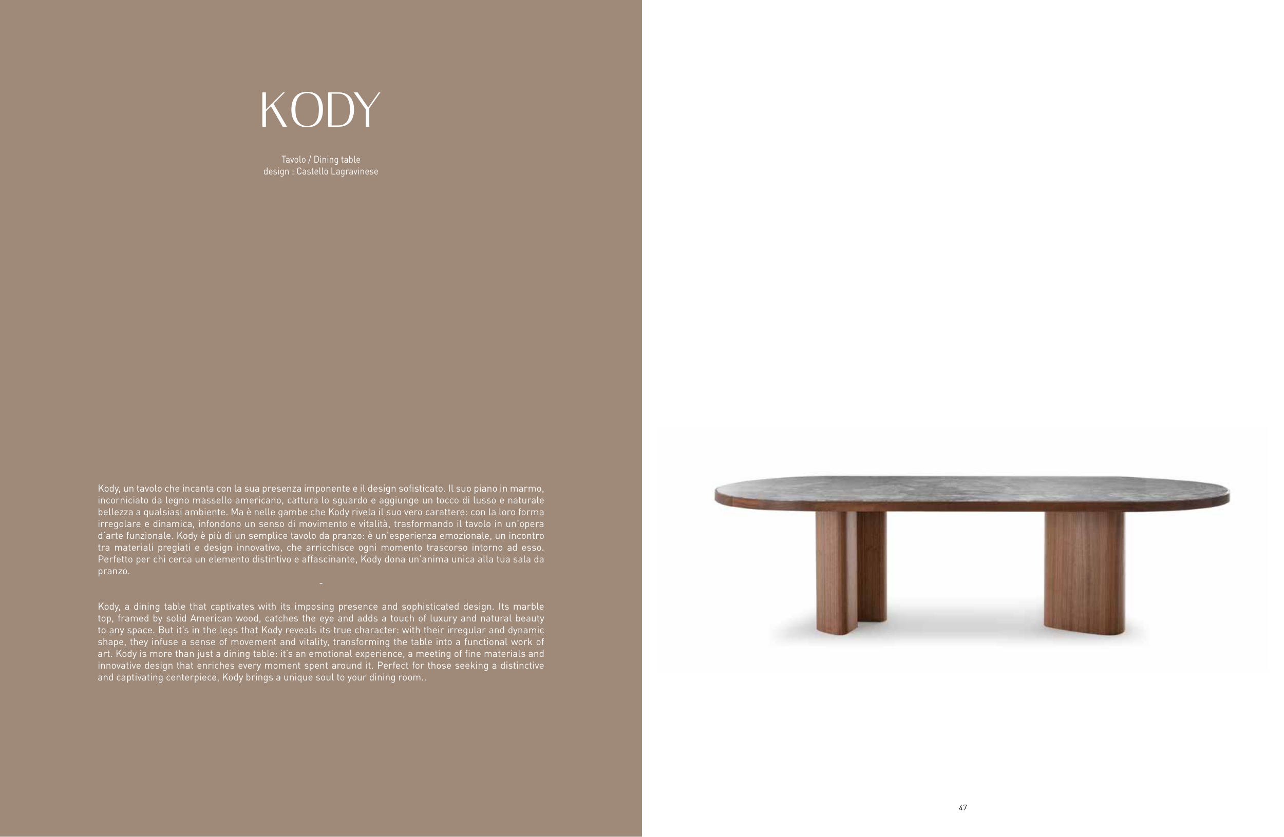 art. Kody is more than just a dining table: it’s an emotional experience, a meeting of fine materials and