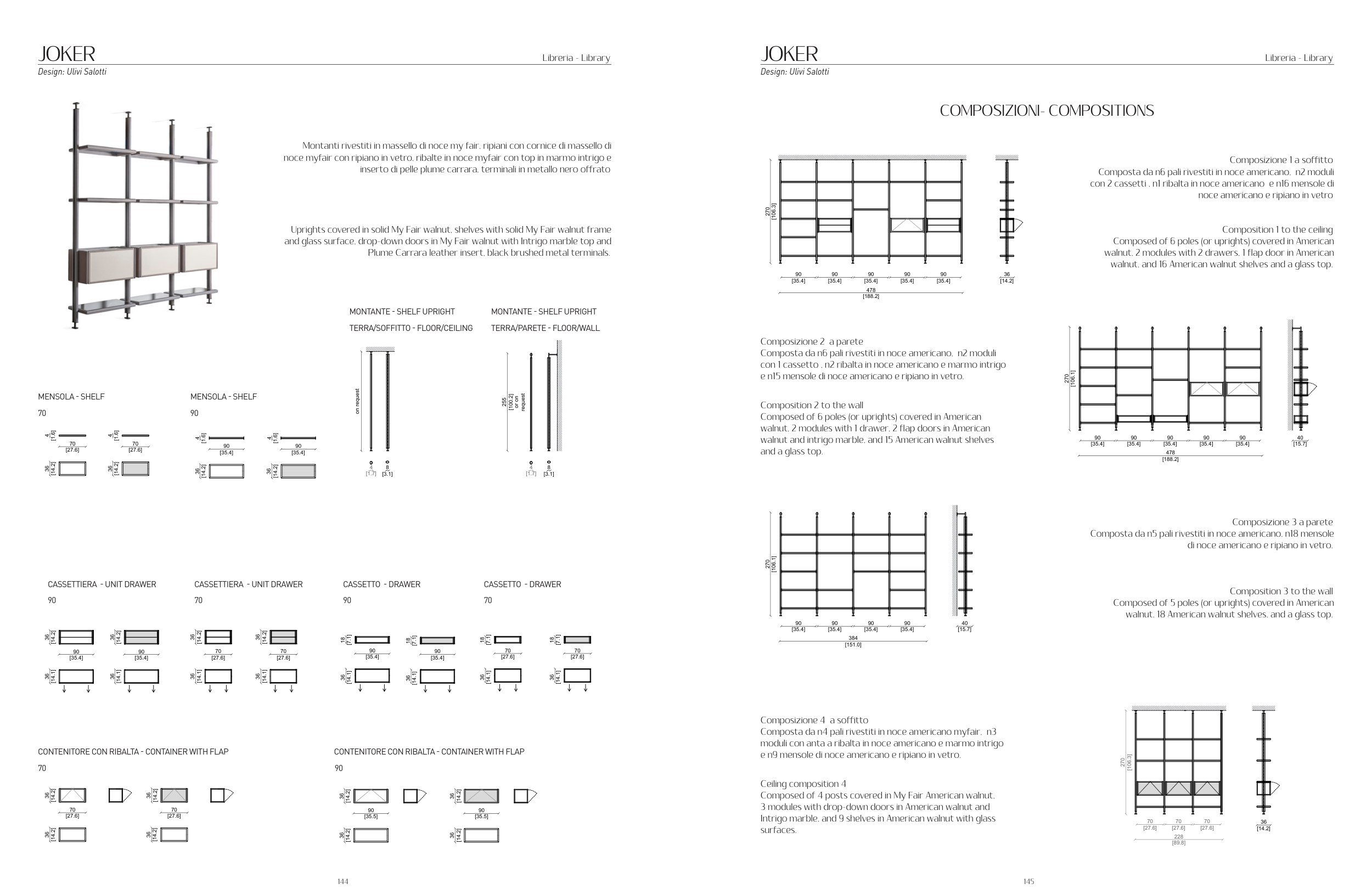 Composta da n6 pali rivestiti in noce americano, n2 moduli