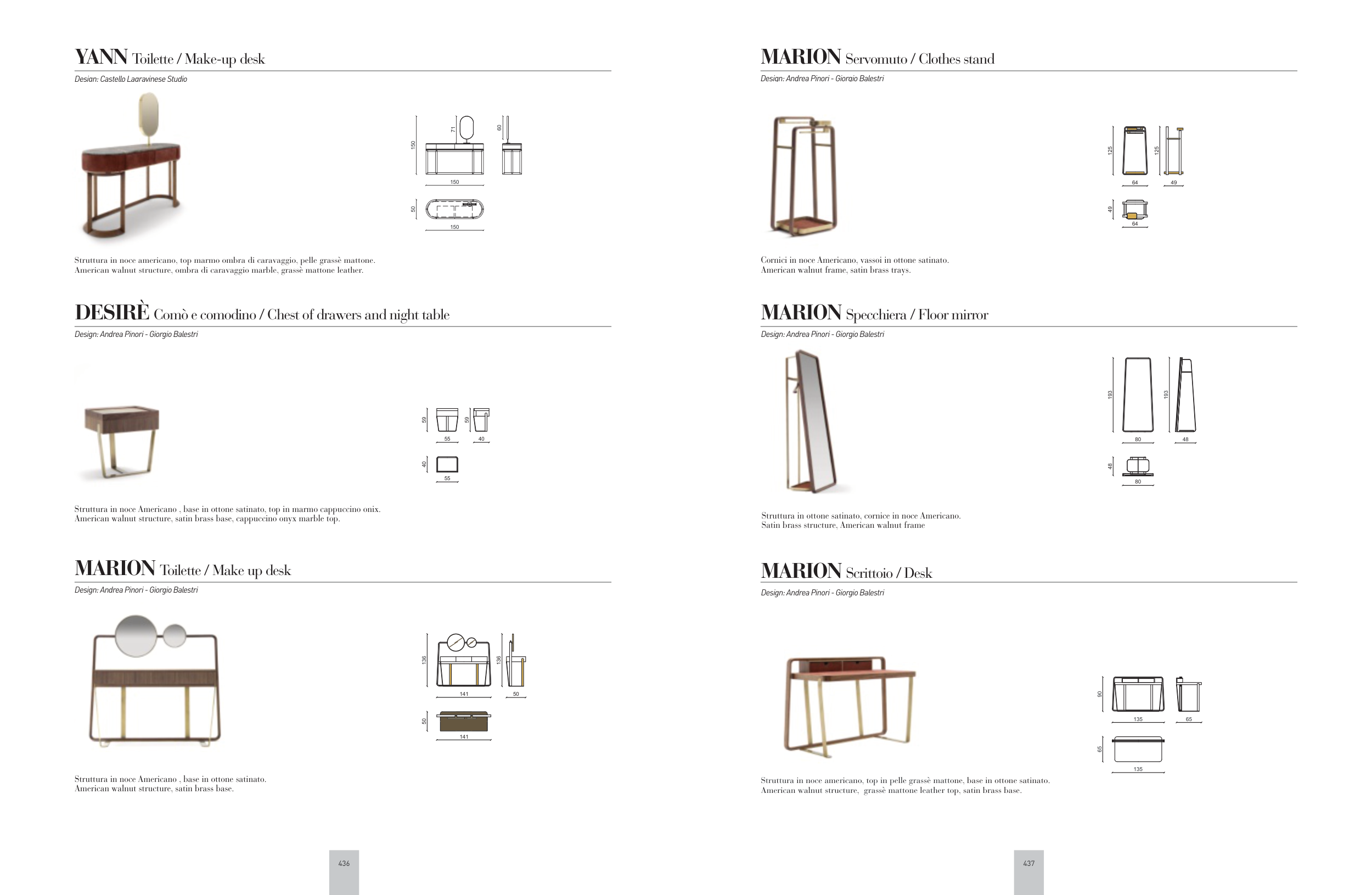 American walnut structure, ombra di caravaggio marble, grassè mattone leather.