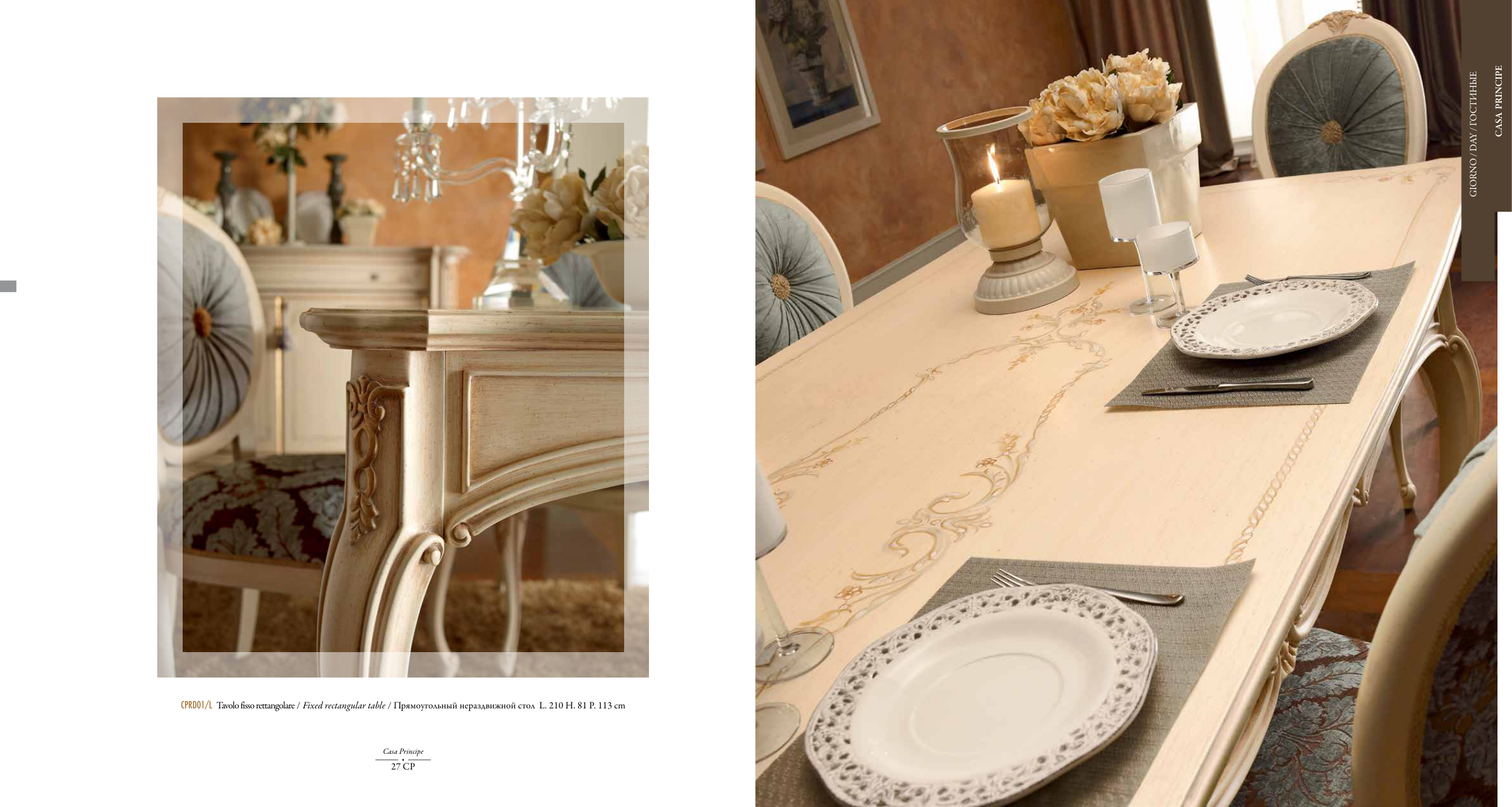 CPRD01/L Tavolo fisso rettangolare / Fixed rectangular table / Прямоугольный нераздвижной стол L. 210 H. 81 P. 113 cm