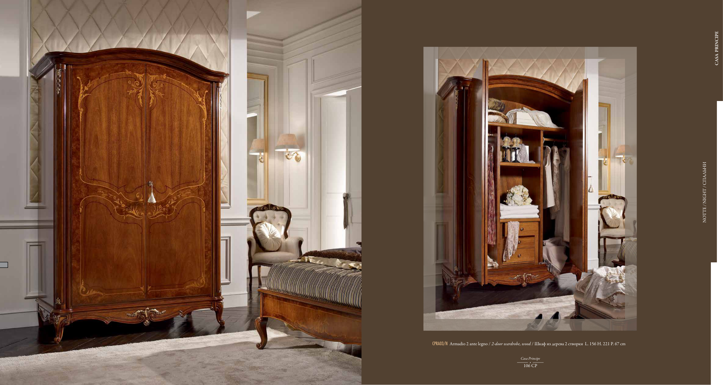 CPRA03/N Armadio 2 ante legno / 2-door wardrobe, wood / Шкаф из дерева 2 створки L. 156 H. 221 P. 67 cm