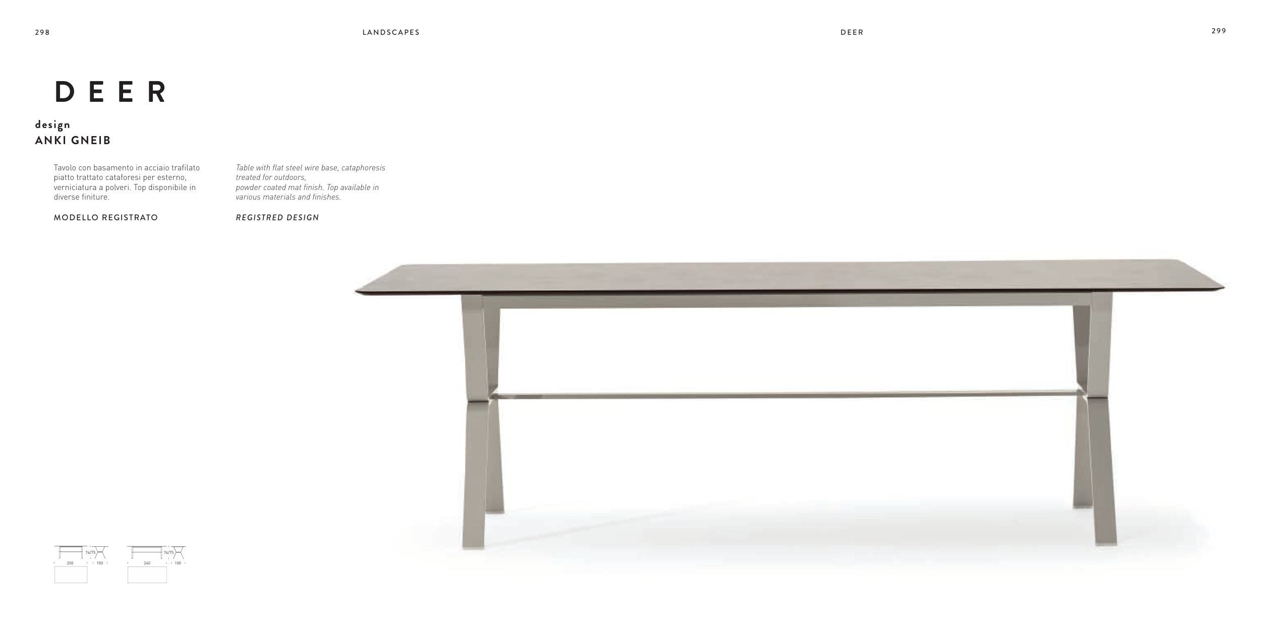 Tavolo con basamento in acciaio trafilato