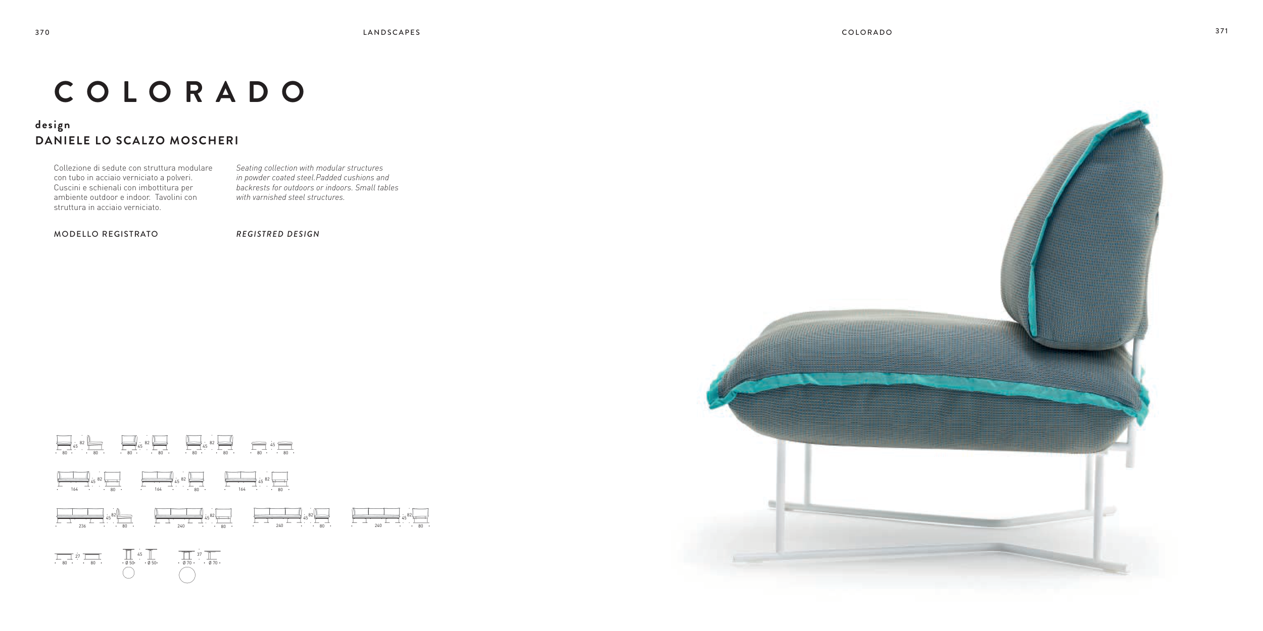 Collezione di sedute con struttura modulare
