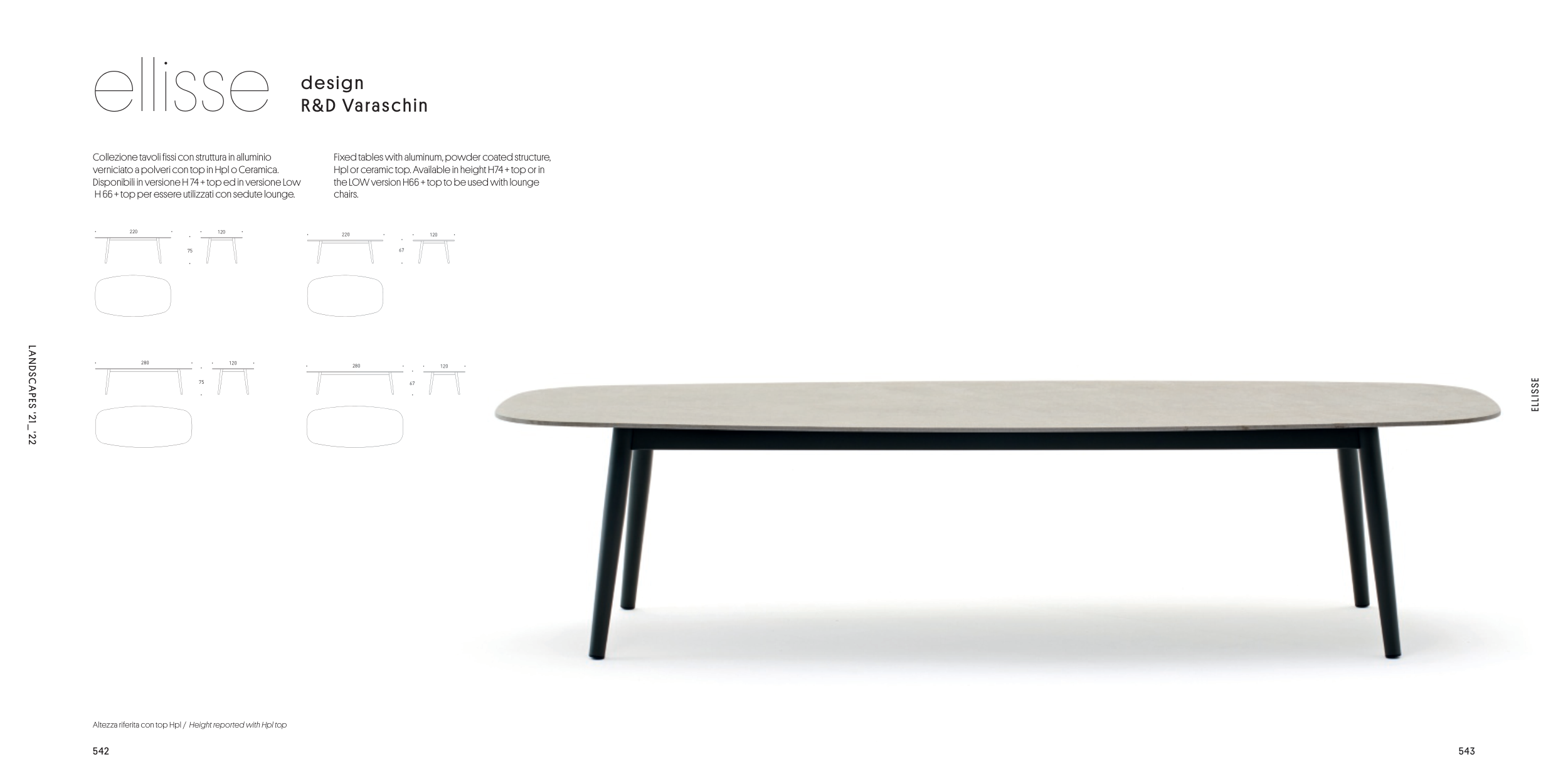 Hpl or ceramic top. Available in height H74 + top or in