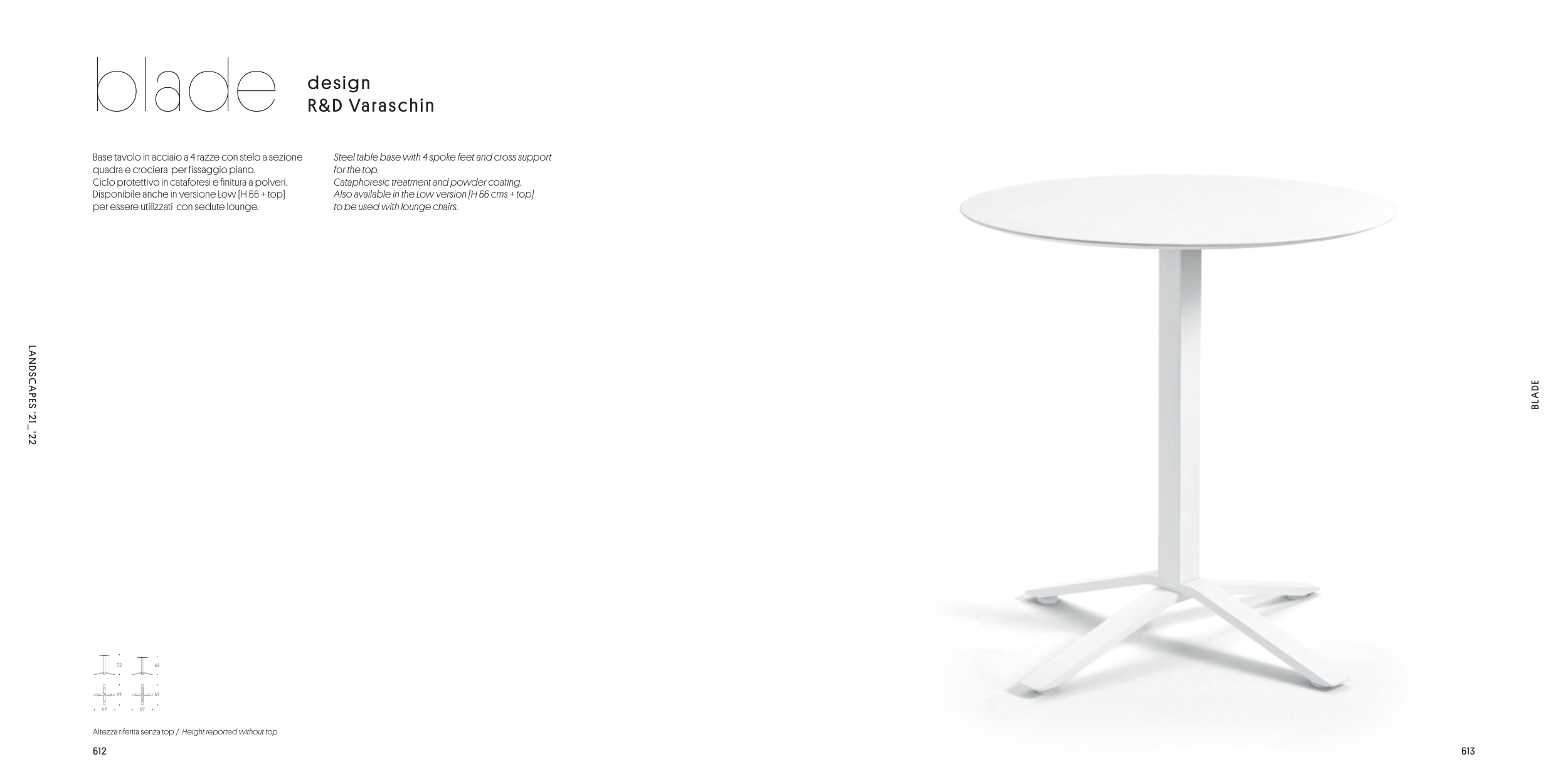 Also available in the Low version (H 66 cms + top)