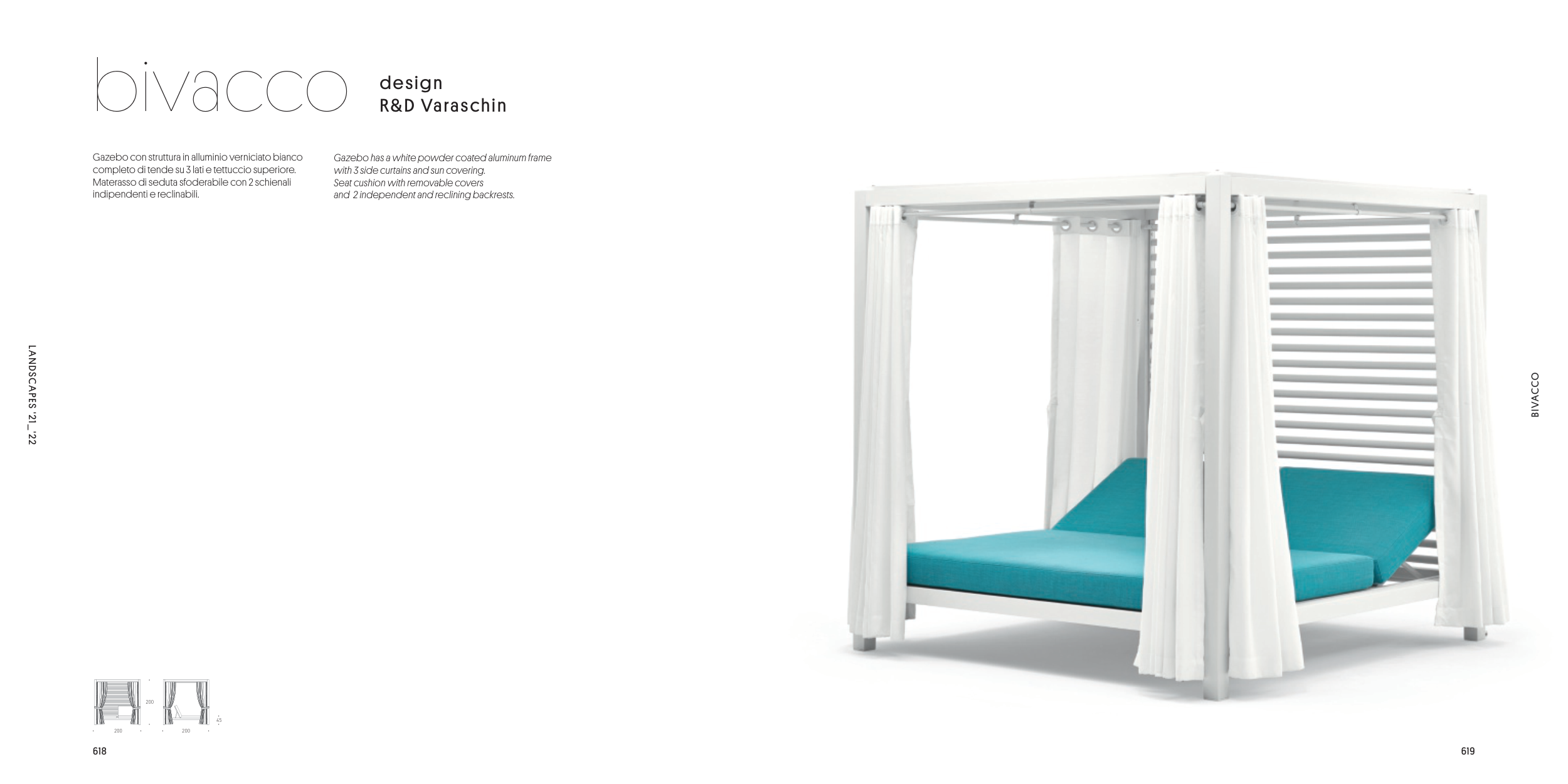 completo di tende su 3 lati e tettuccio superiore.
