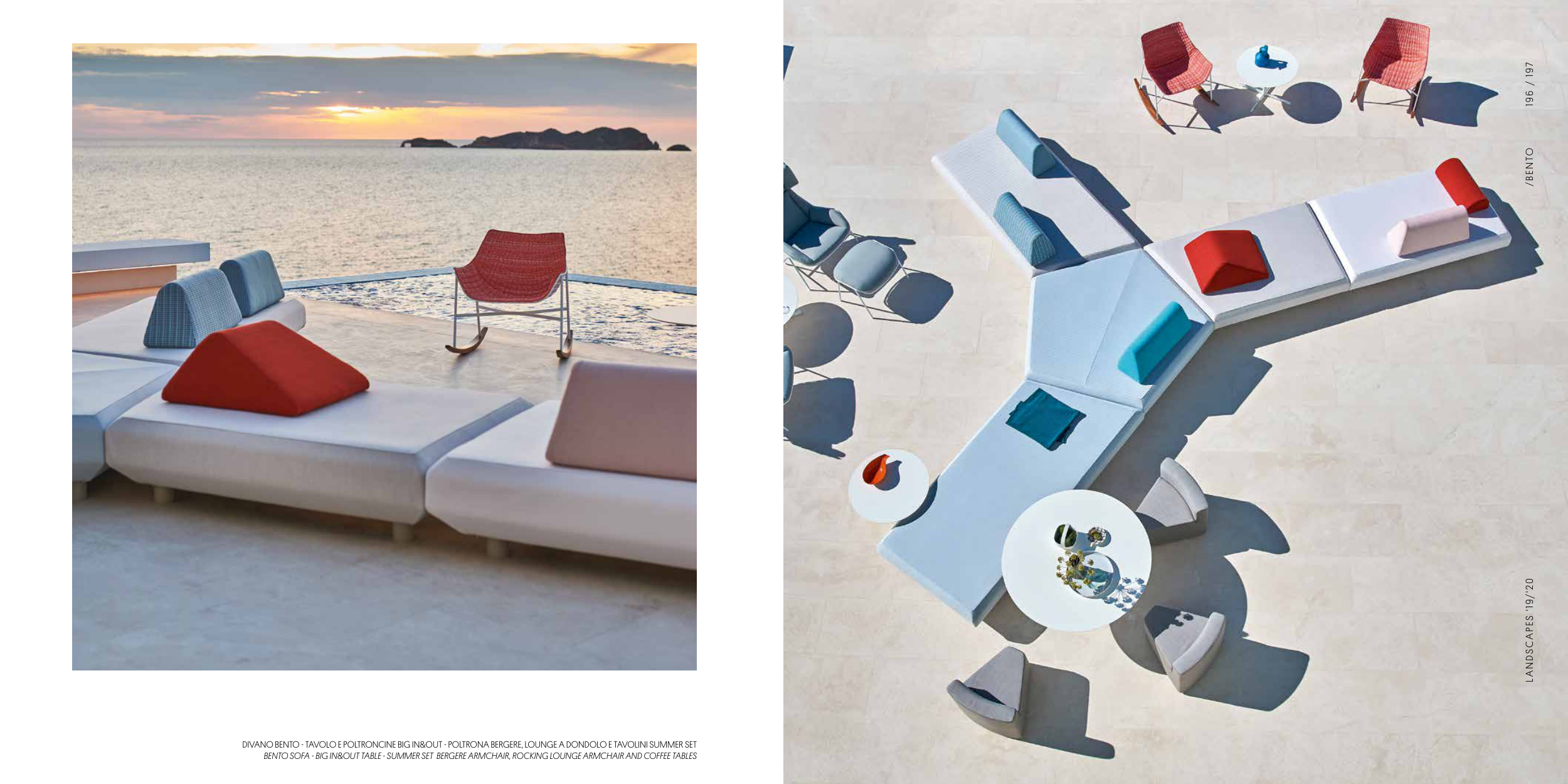 DIVANO BENTO - TAVOLO E POLTRONCINE BIG IN&OUT - POLTRONA BERGERE, LOUNGE A DONDOLO E TAVOLINI SUMMER SET