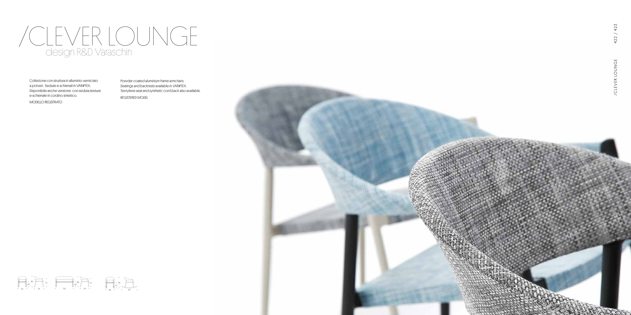 Seatings and backrests available in VAR#TEX.