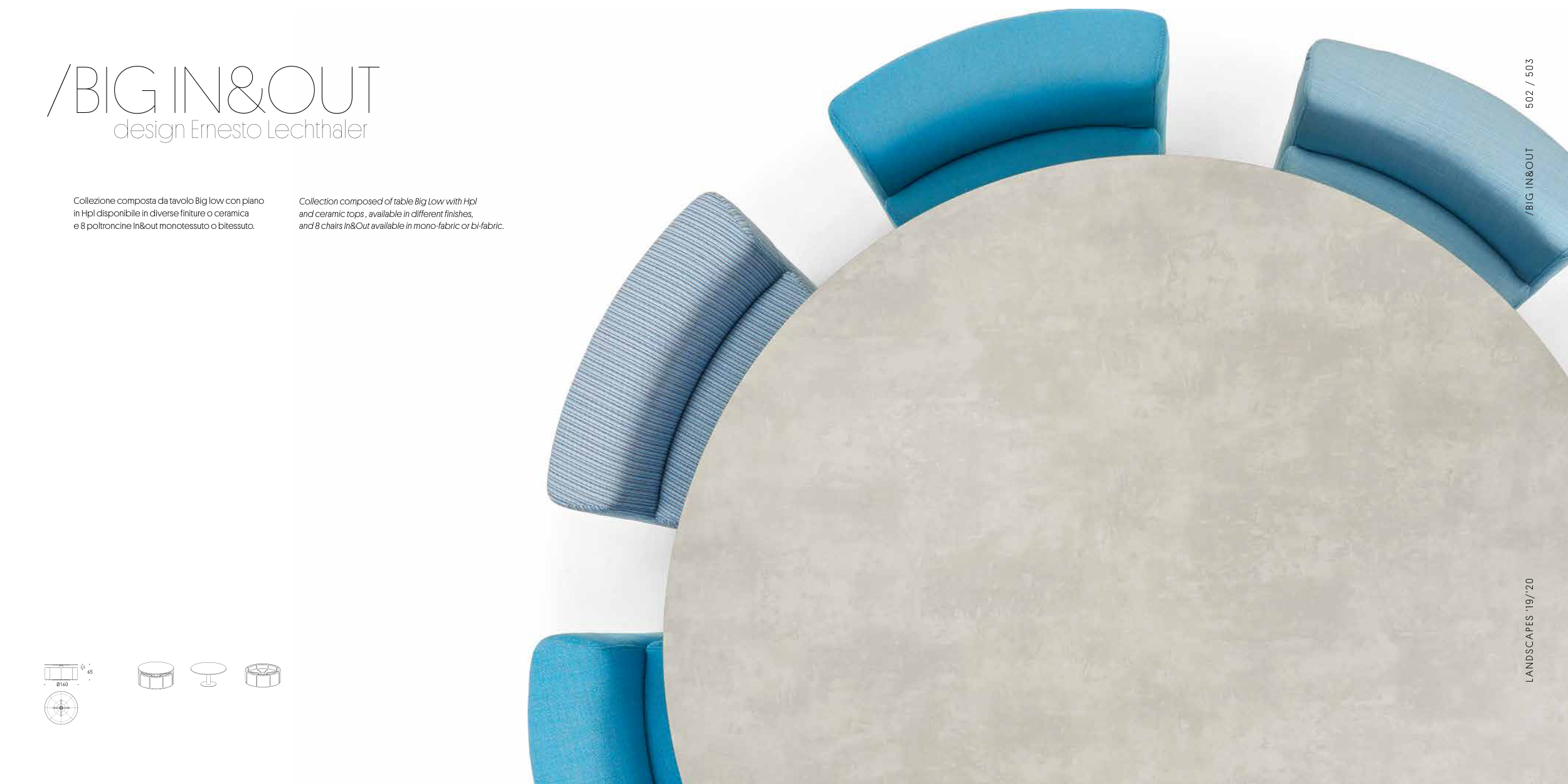 and 8 chairs In&Out available in mono-fabric or bi-fabric.