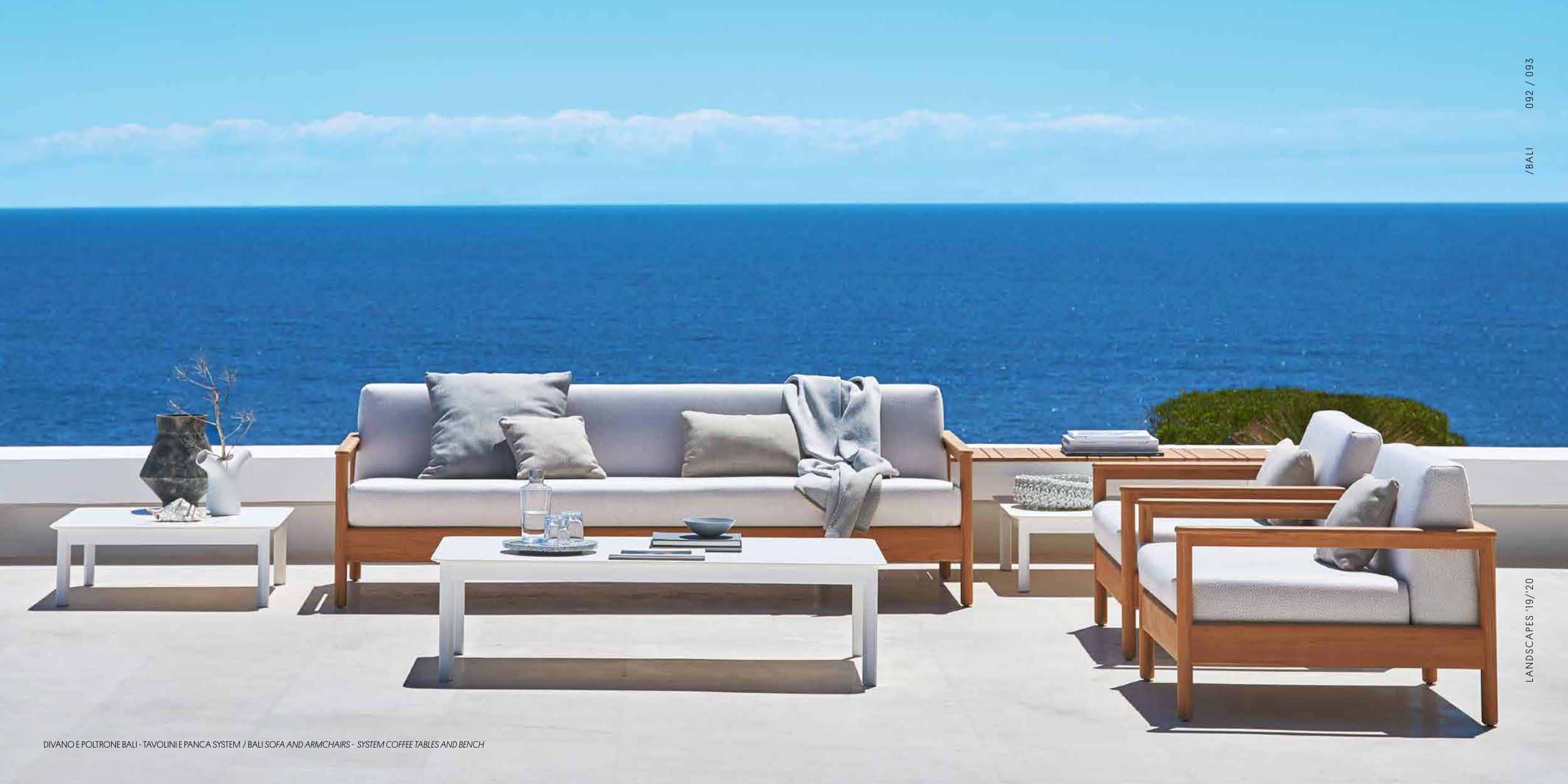 DIVANO E POLTRONE BALI - TAVOLINI E PANCA SYSTEM / BALI SOFA AND ARMCHAIRS - SYSTEM COFFEE TABLES AND BENCH
