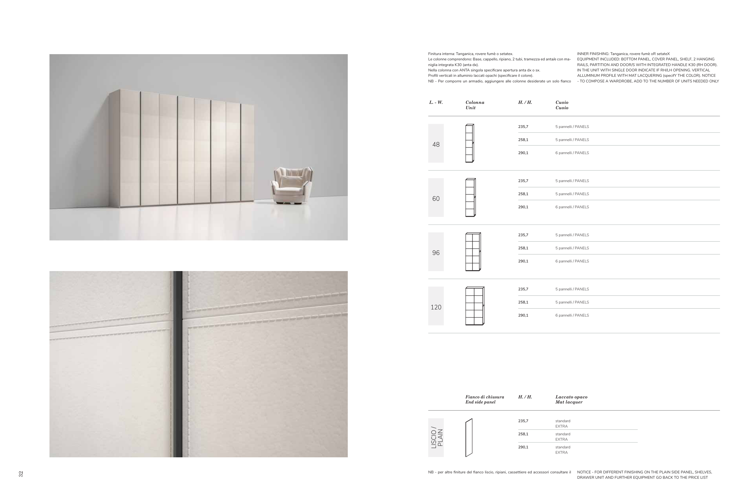 NOTICE - FOR DIFFERENT FINISHING ON THE PLAIN SIDE PANEL, SHELVES,