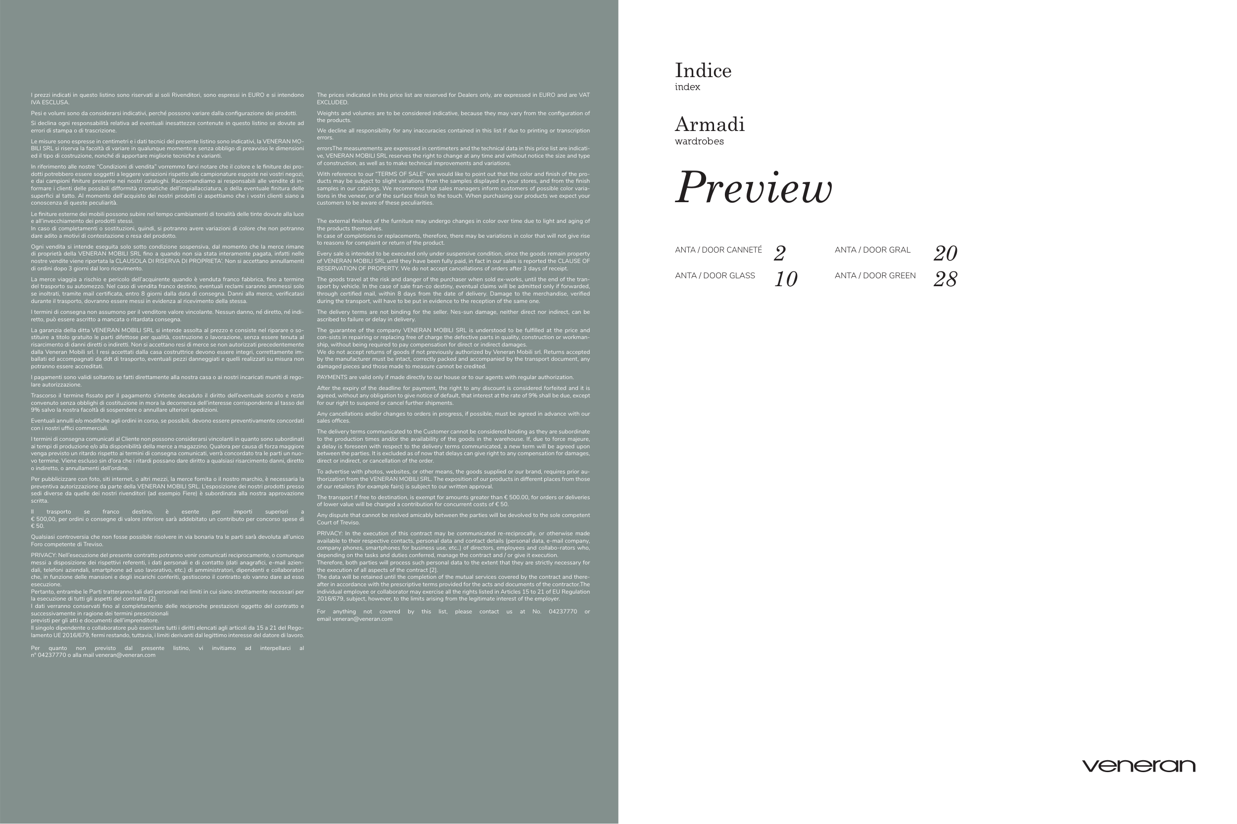Le misure sono espresse in centimetri e i dati tecnici del presente listino sono indicativi, la VENERAN MO-