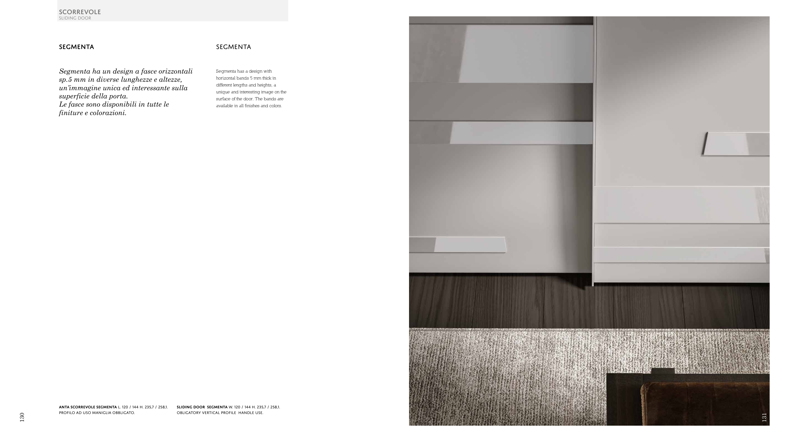 SLIDING DOOR SEGMENTA W. 120 / 144 H. 235,7 / 258,1.