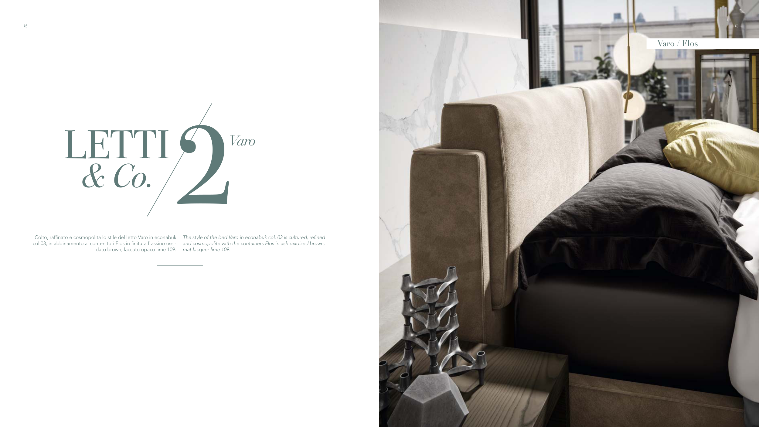 The style of the bed Varo in econabuk col. 03 is cultured, refi ned