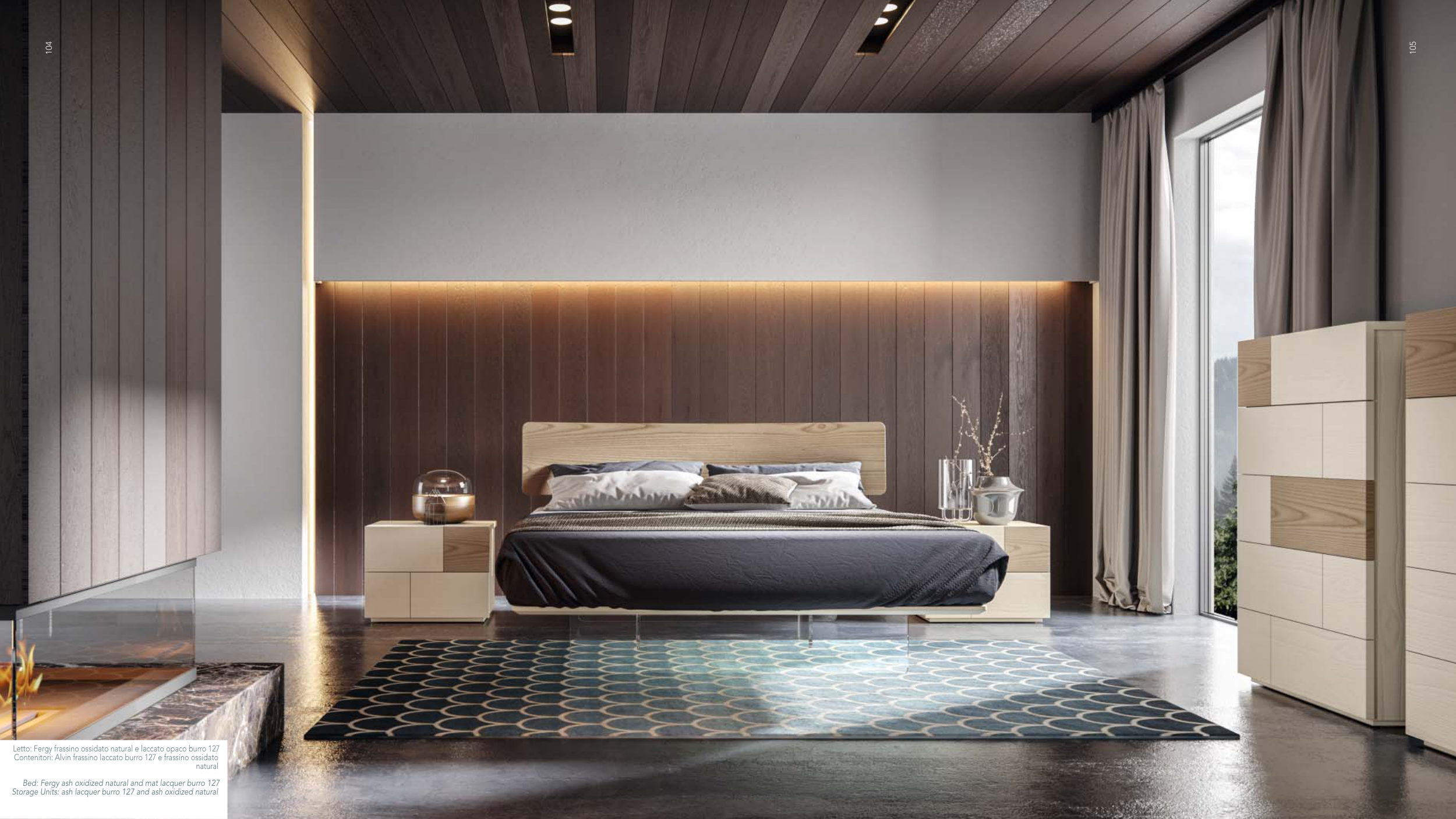 Letto: Fergy frassino ossidato natural e laccato opaco burro 127