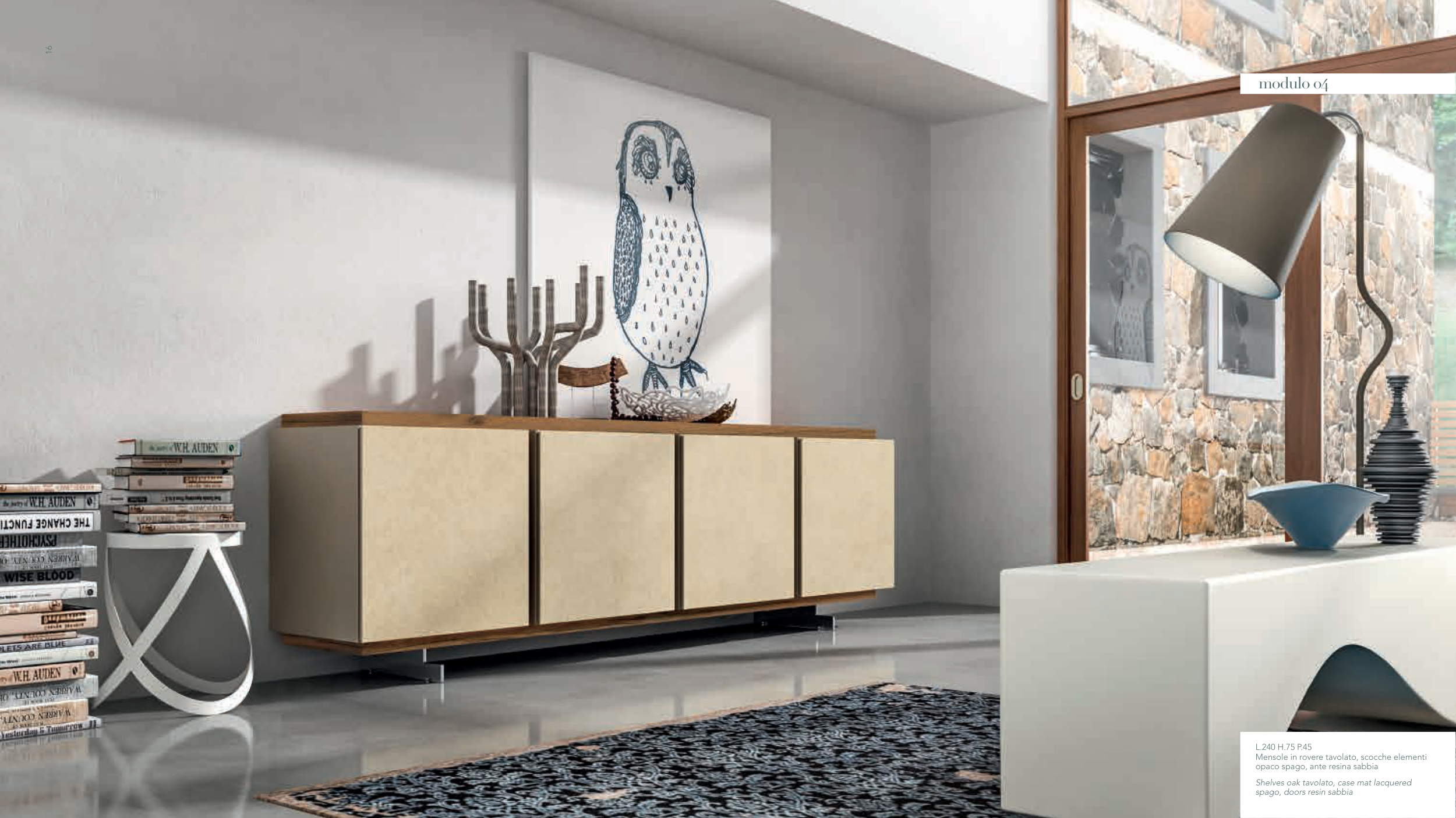 Shelves oak tavolato, case mat lacquered