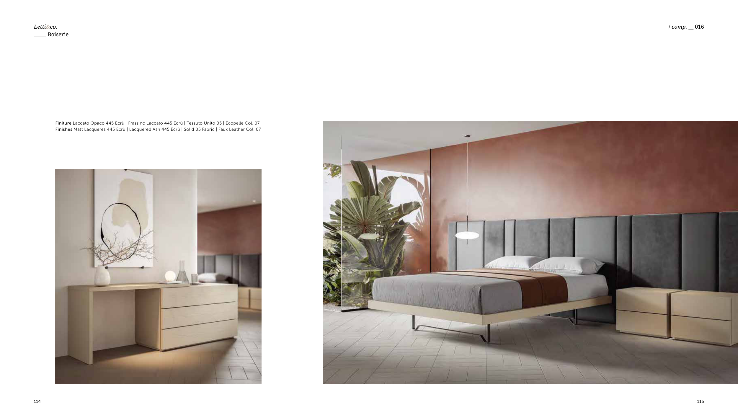Finiture Laccato Opaco 445 Ecrù | Frassino Laccato 445 Ecrù | Tessuto Unito 05 | Ecopelle Col. 07