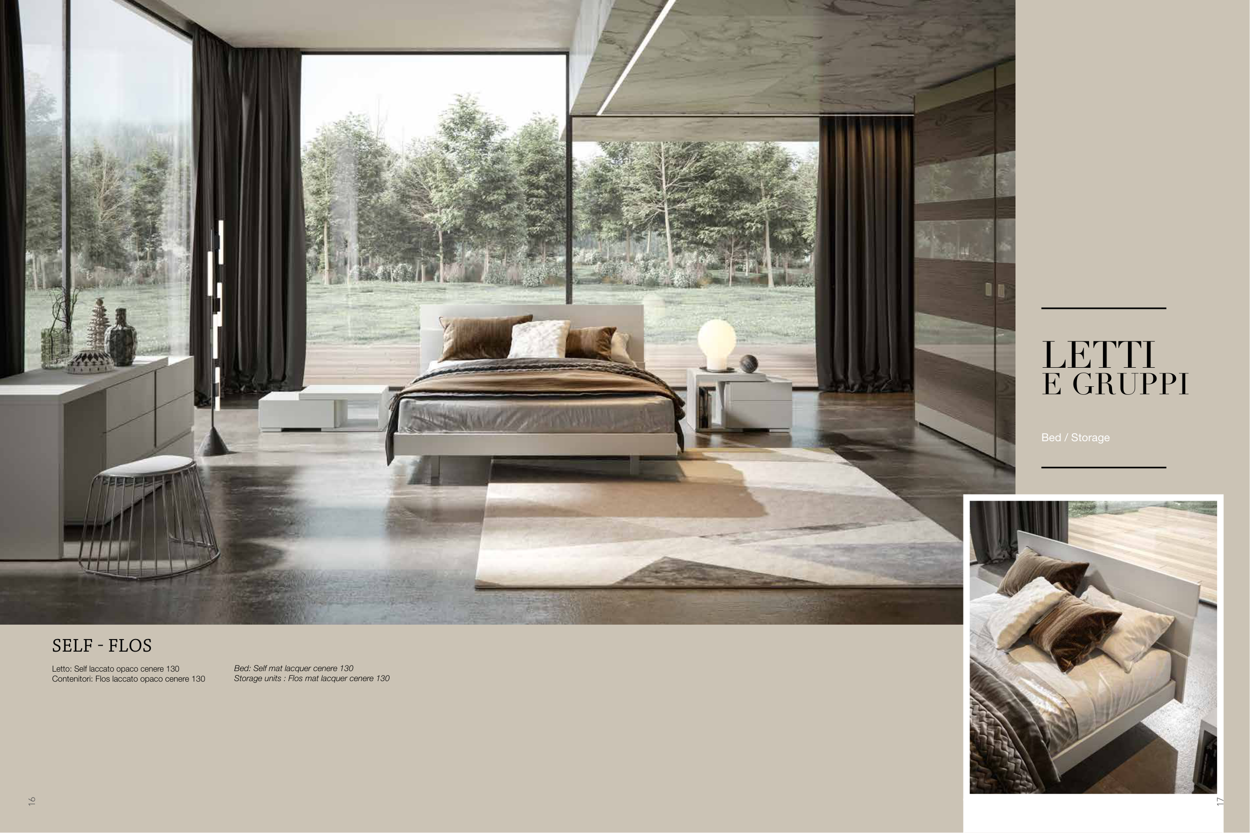 Bed: Self mat lacquer cenere 130