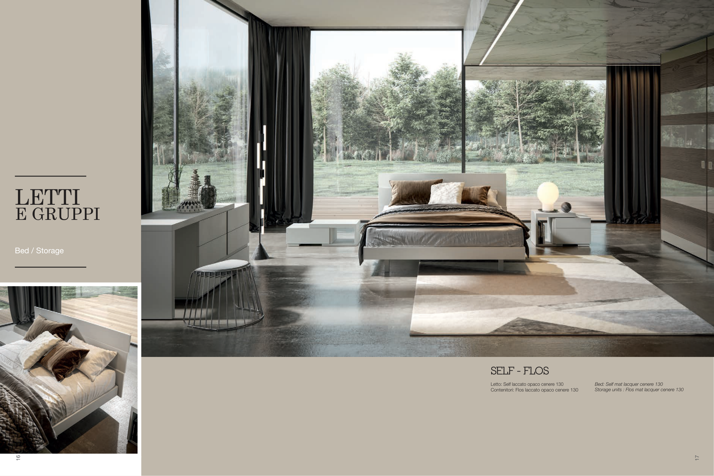 Bed: Self mat lacquer cenere 130