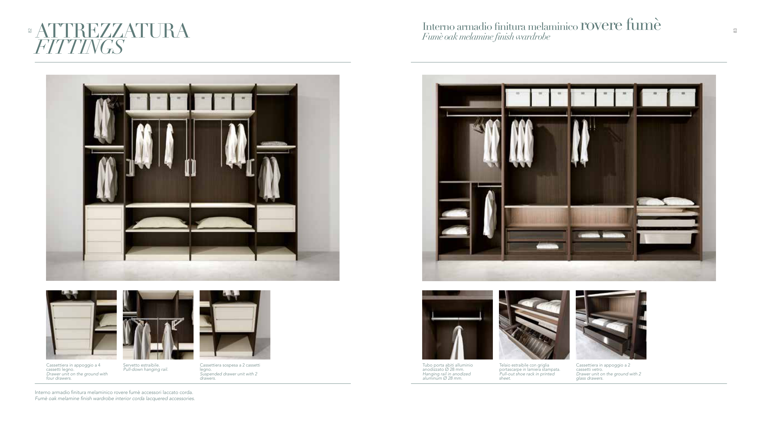 Fumè oak melamine finish wardrobe interior corda lacquered accessories.