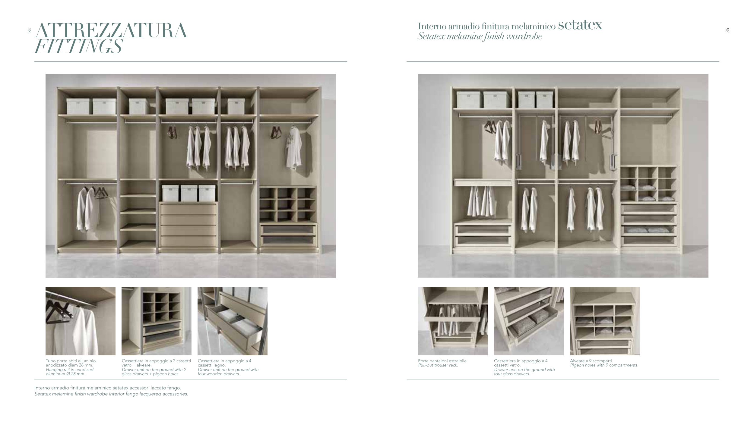 Setatex melamine finish wardrobe interior fango lacquered accessories.