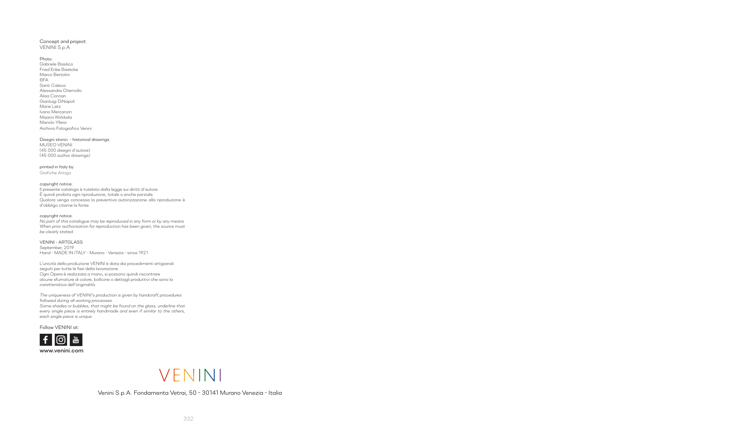 Venini S.p.A. Fondamenta Vetrai, 50 - 30141 Murano Venezia - Italia