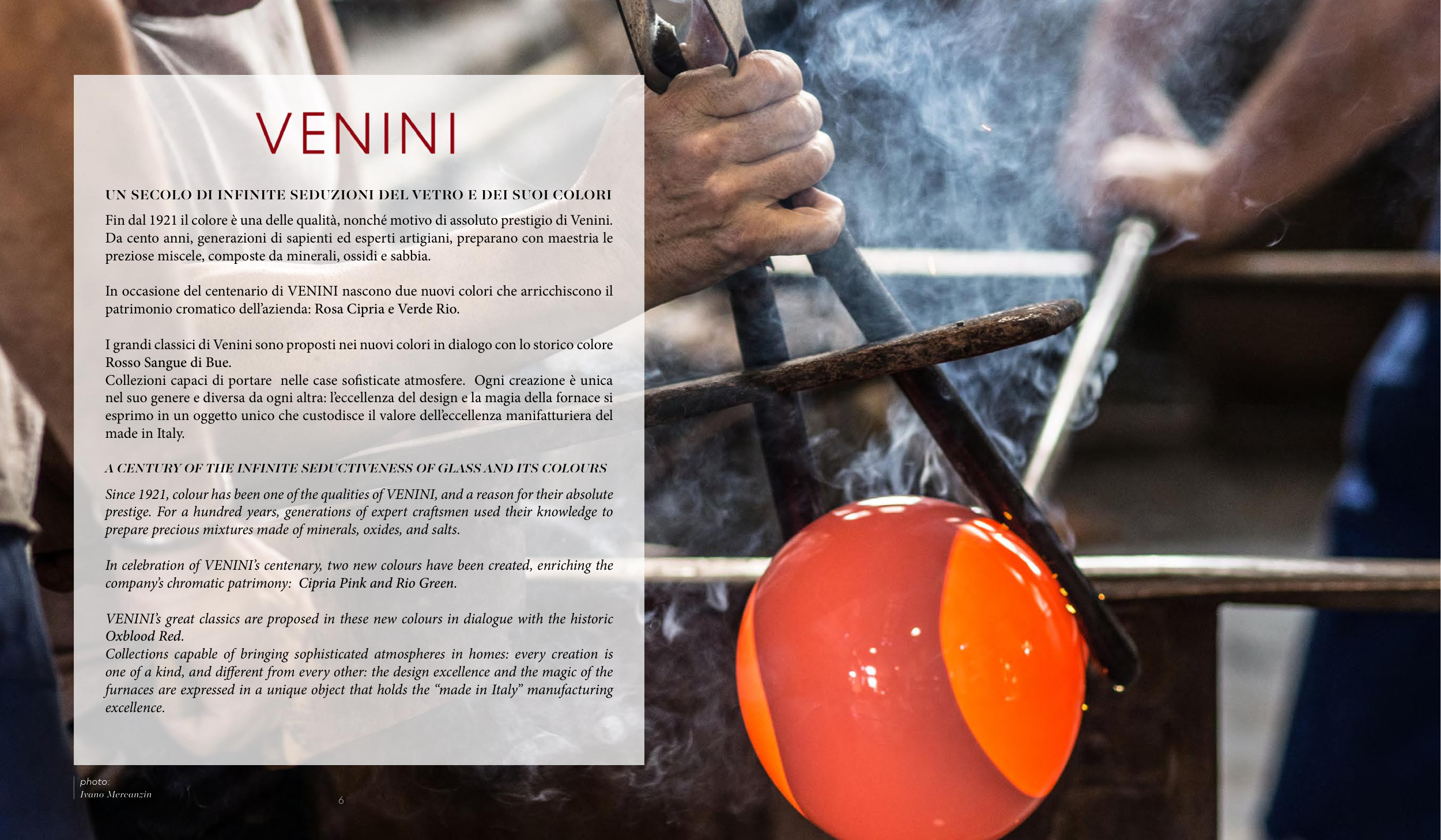 In celebration of VENINI’s centenary, two new colours have been created, enriching the