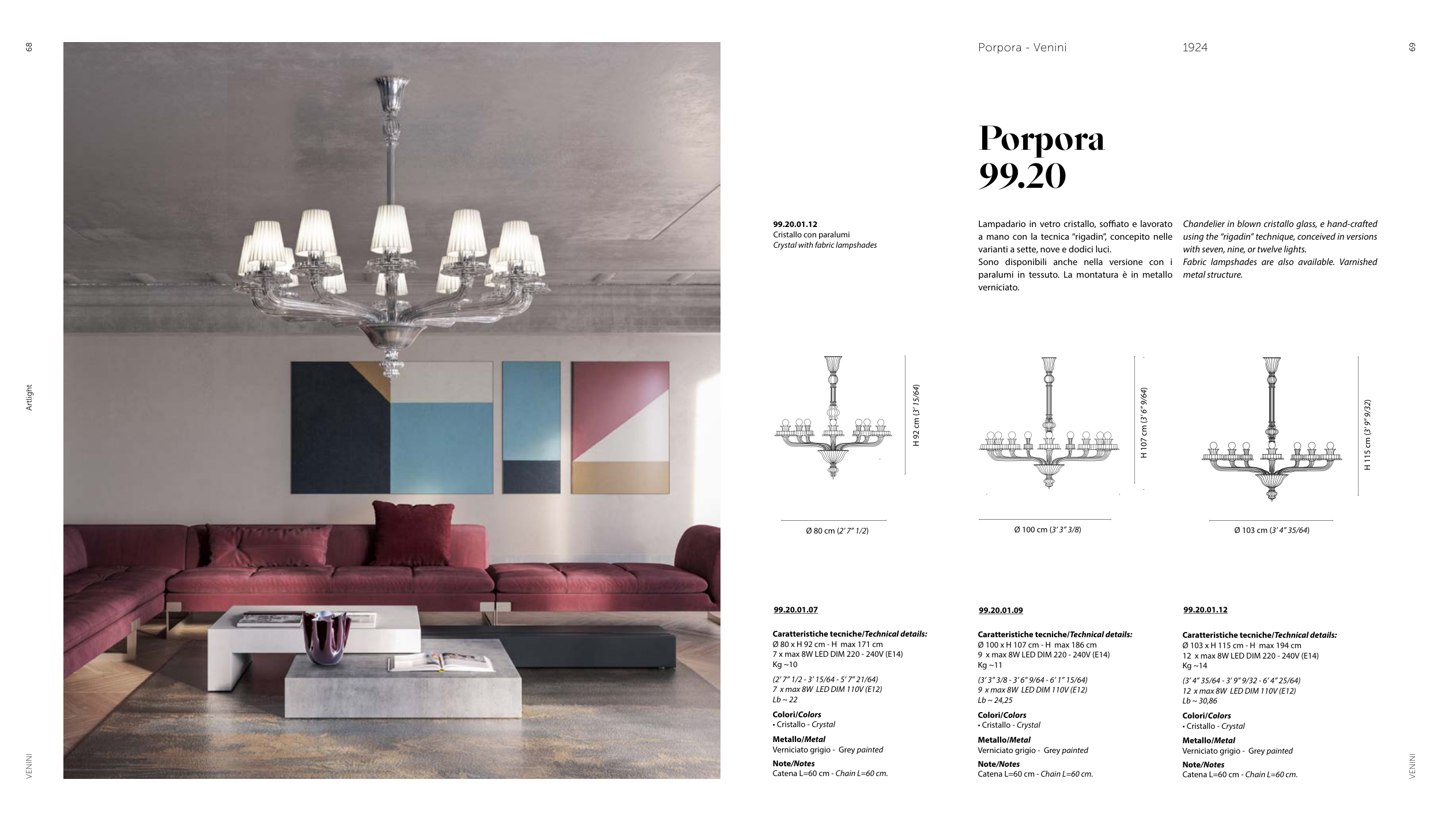 varianti a sette, nove e dodici luci.