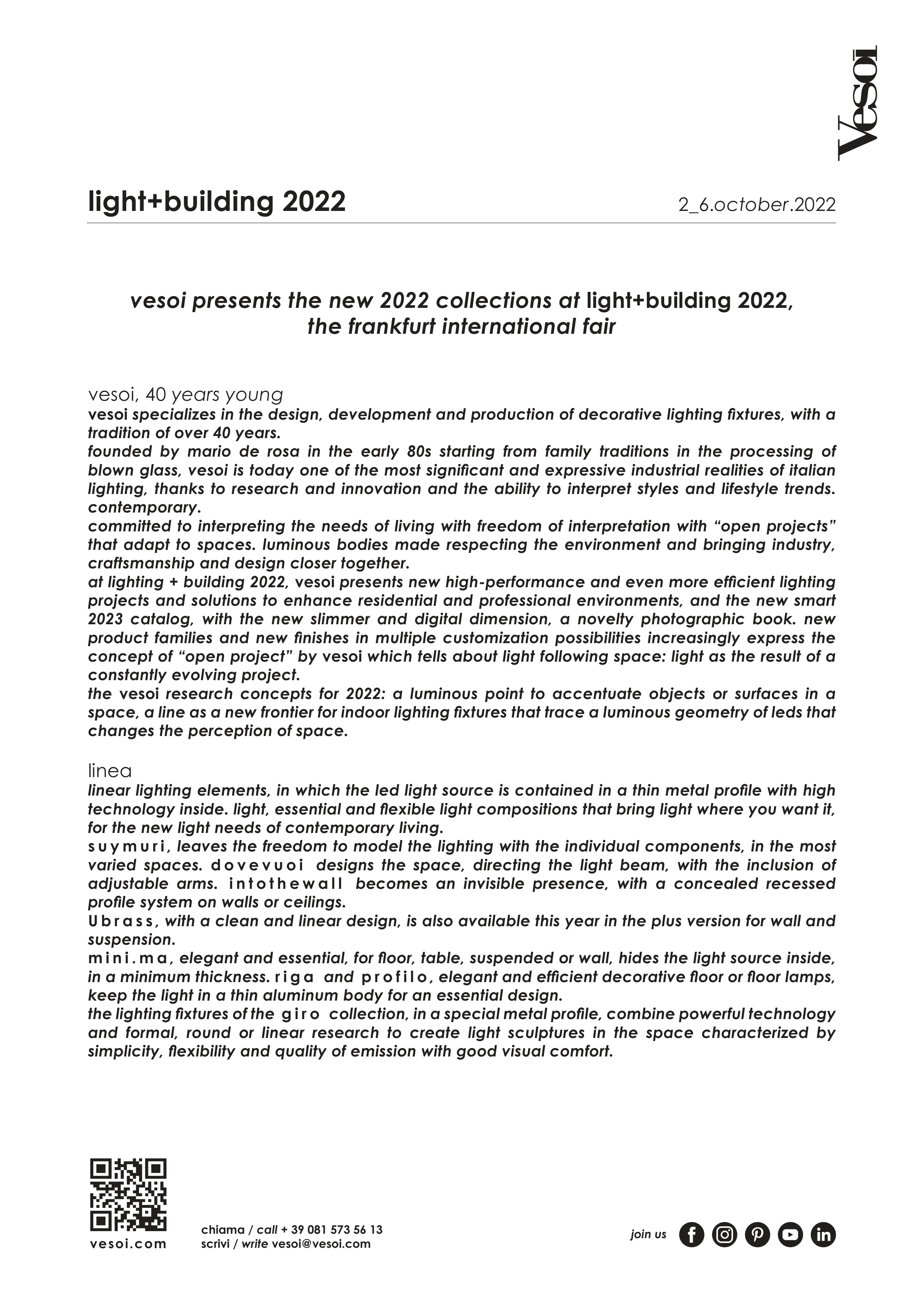 vesoi presents the new 2022 collections at light+building 2022,