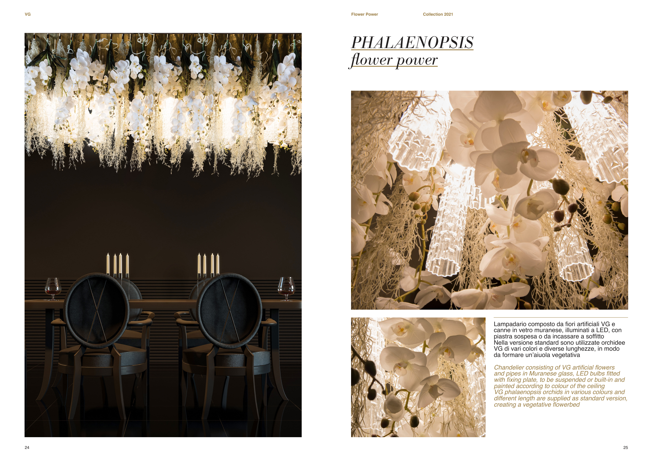Lampadario composto da fiori artificiali VG e