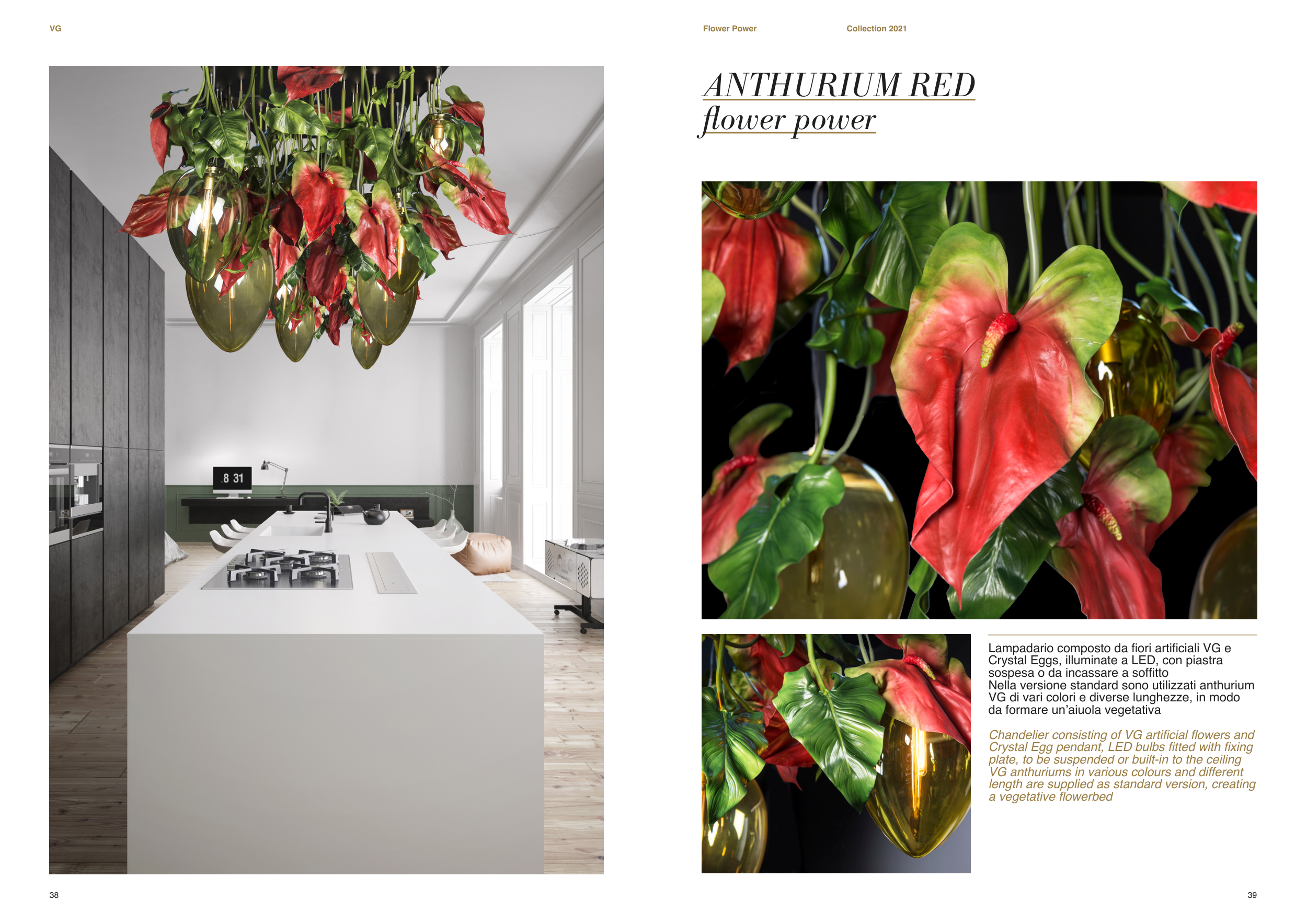 Chandelier consisting of VG artificial flowers and