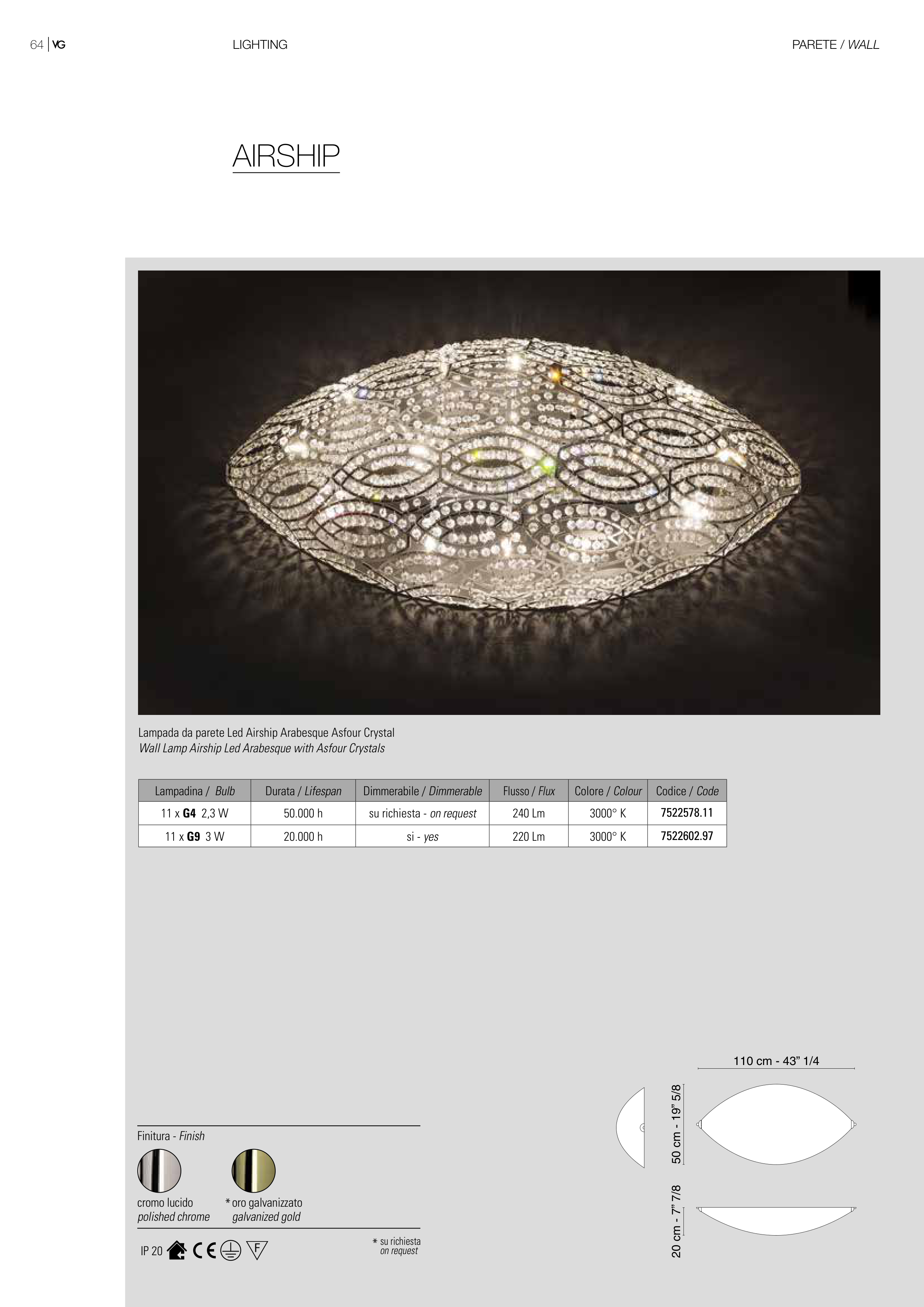 Lampada da parete Led Airship Arabesque Asfour Crystal