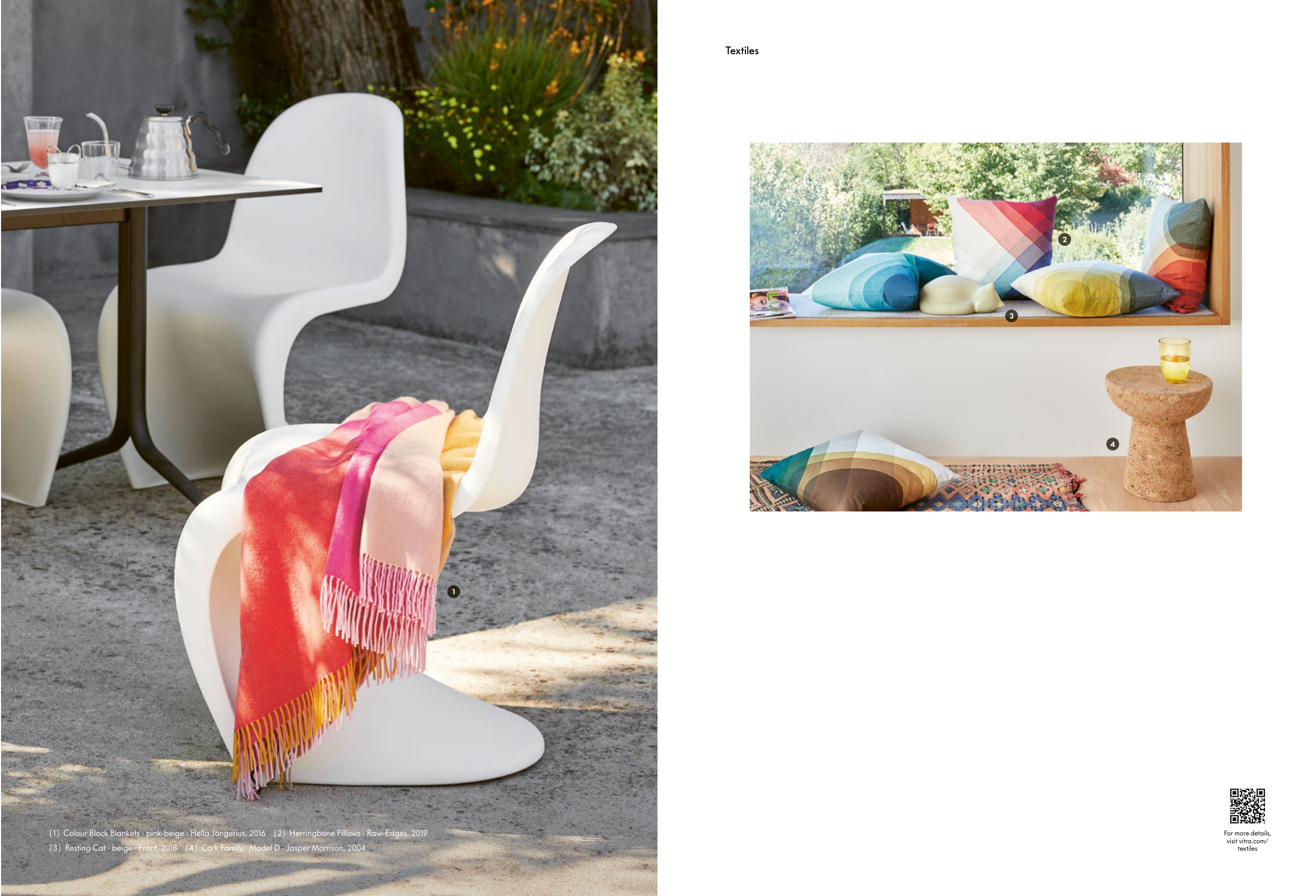( 1 ) Colour Block Blankets · pink-beige · Hella Jongerius , 2016 ( 2 ) Herringbone Pillows · Raw-Edges , 2019